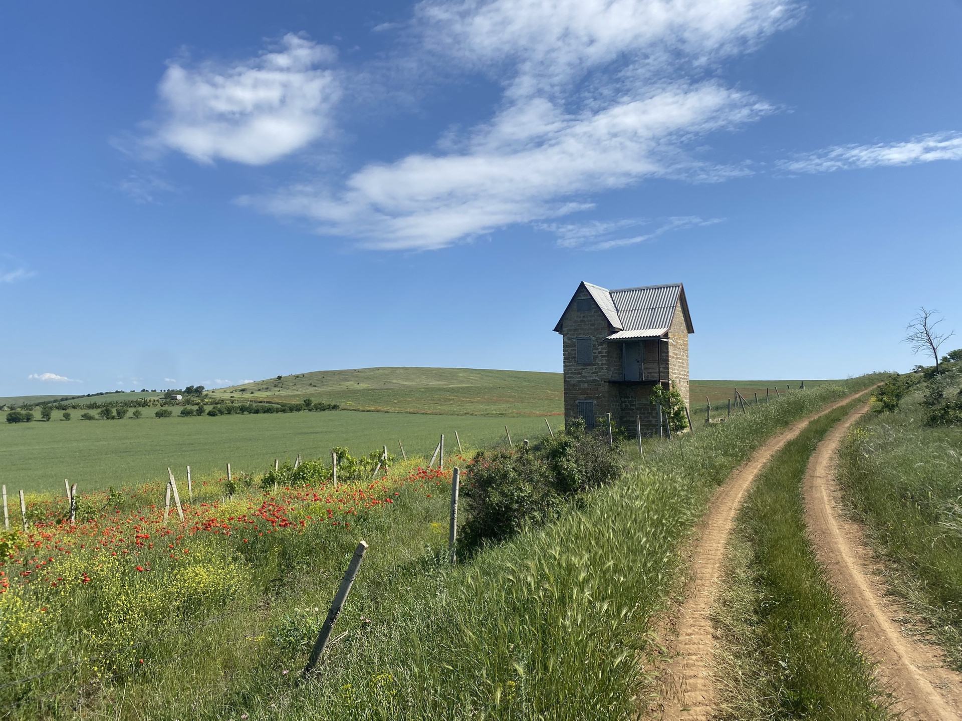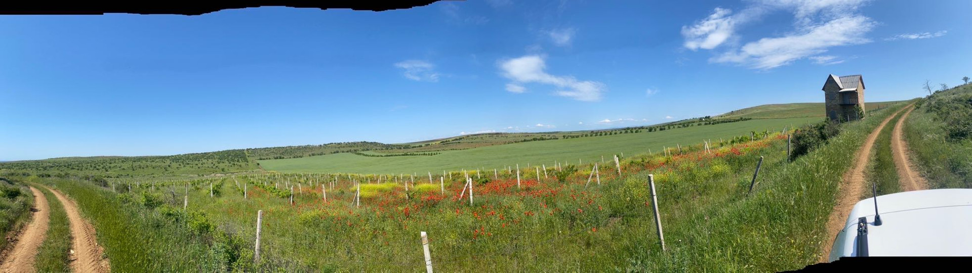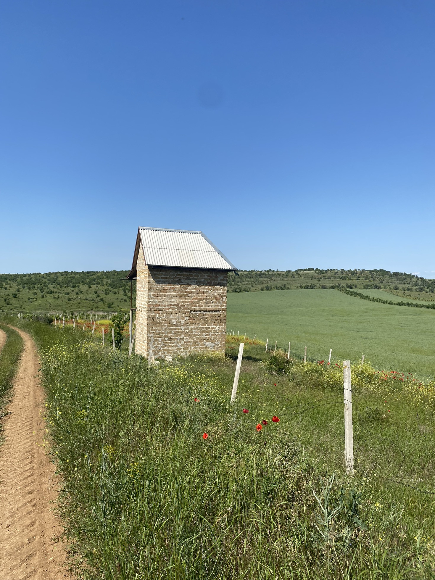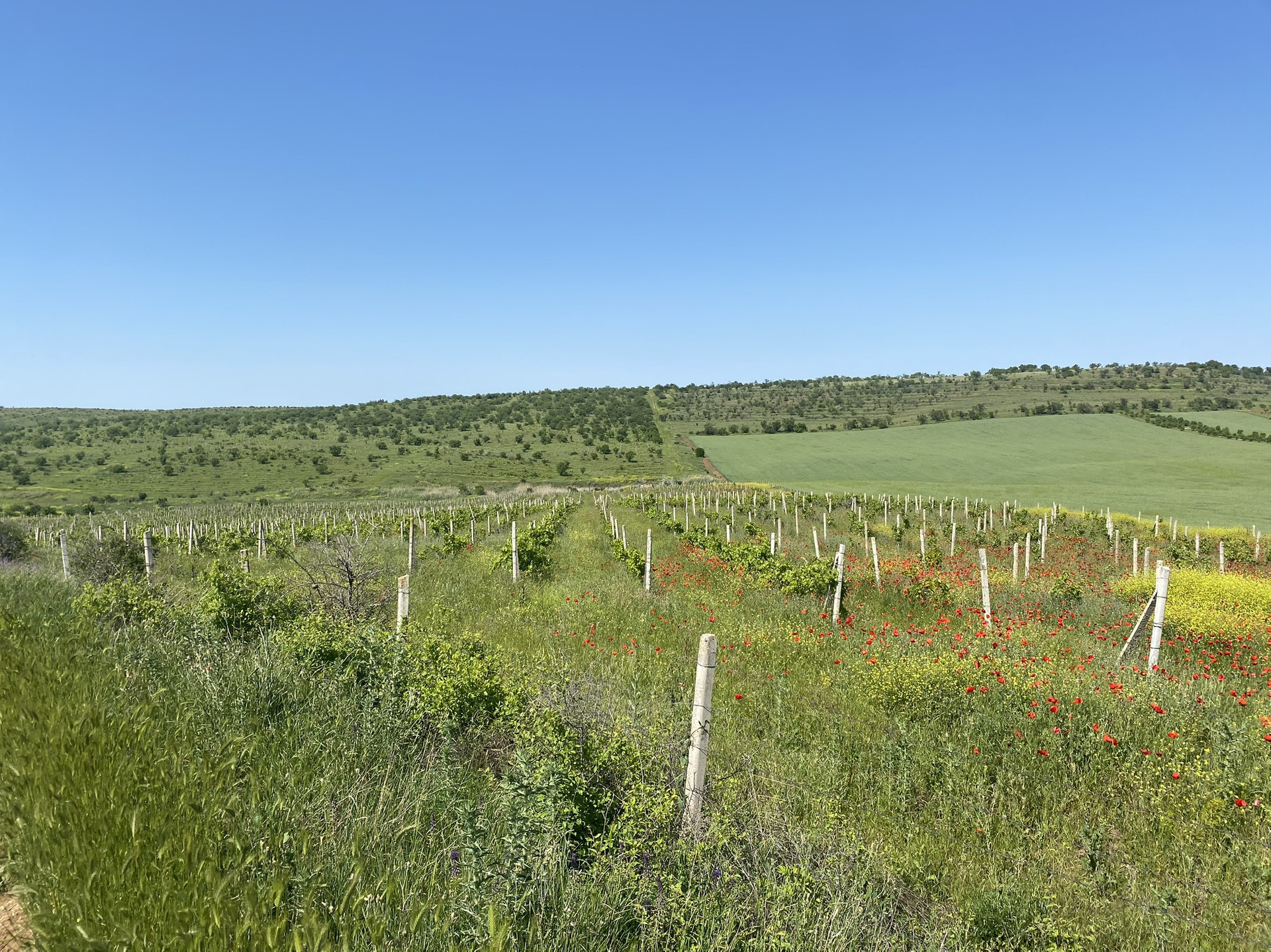 Участок огорожен, произрастает виноград(было высажено 10500шт кустов2014г.) капельный полив , есть на участке  небольшой двухэтажный домик предназначенный для хранения инвентаря и нахождения сторожа.