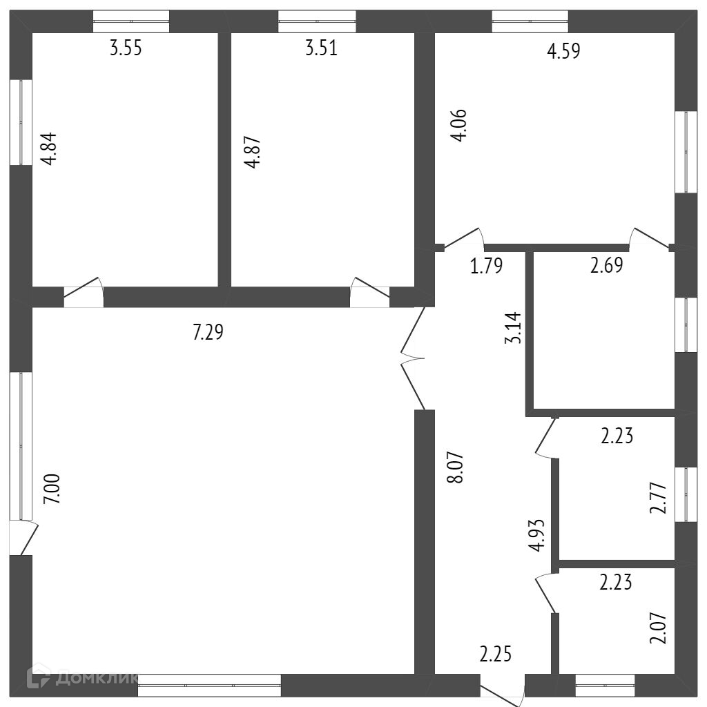 Наружные стены 500 мм. внутренние перегородки - бетон 200 мм.