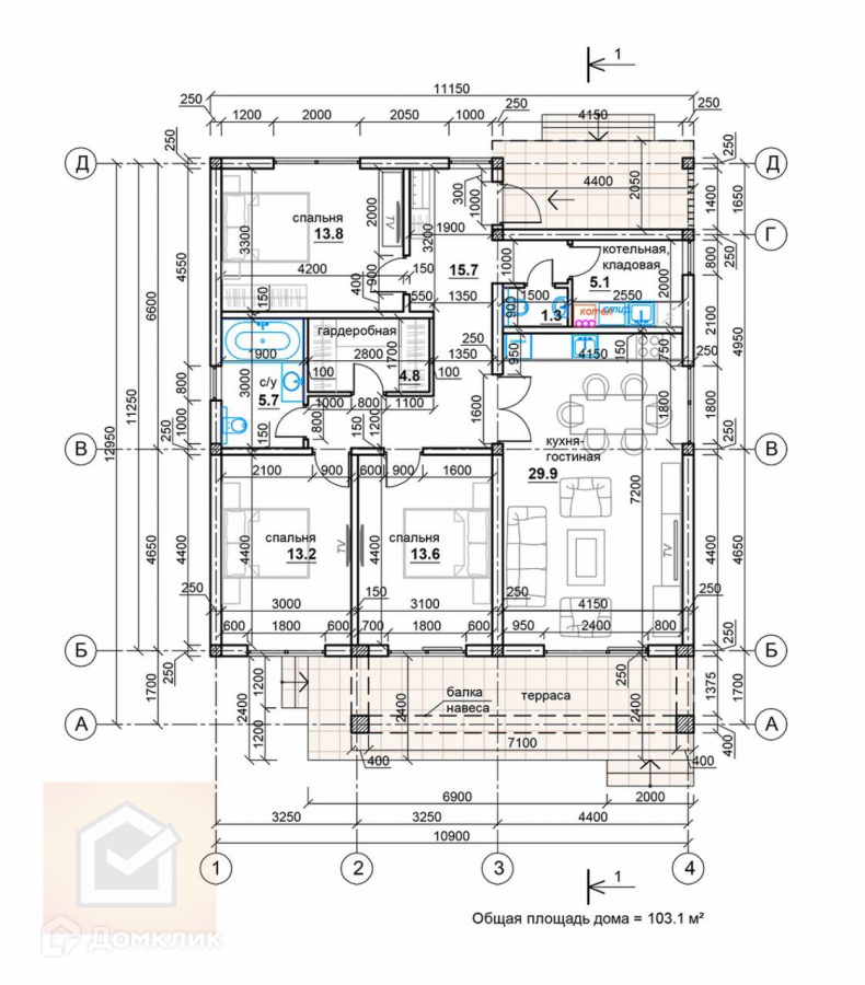 Площадь дома 103 м2