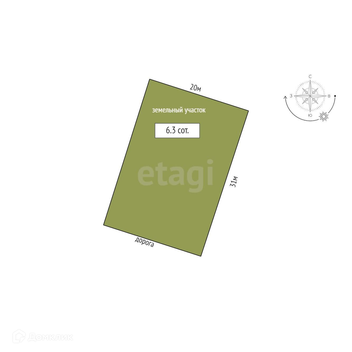 Площадь участка 6.3 сот.