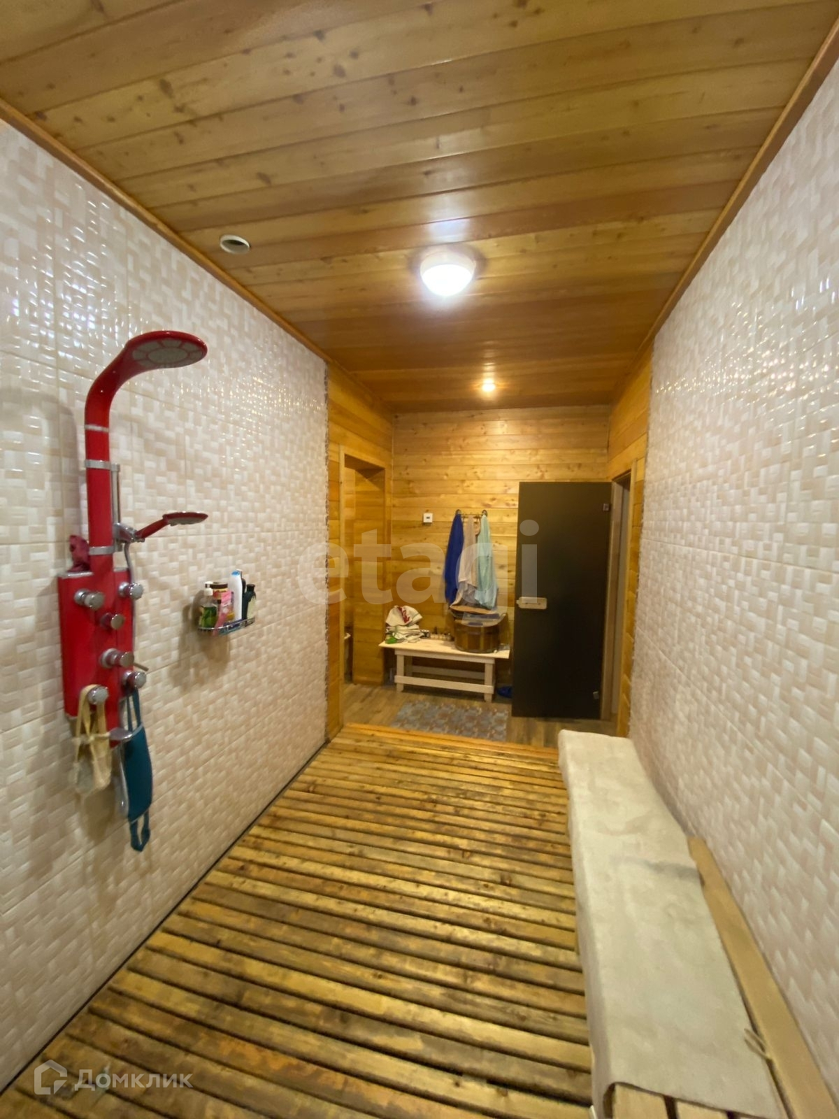 Помимо основного дома, находится баня с парилкой из липы, оснащенная подсветкой, финской печью и вентиляцией. В доме также имеется отдельный гостевой блок с санузлом и кладовой в кедровом исполнении, а также встроенный шкаф-купе.