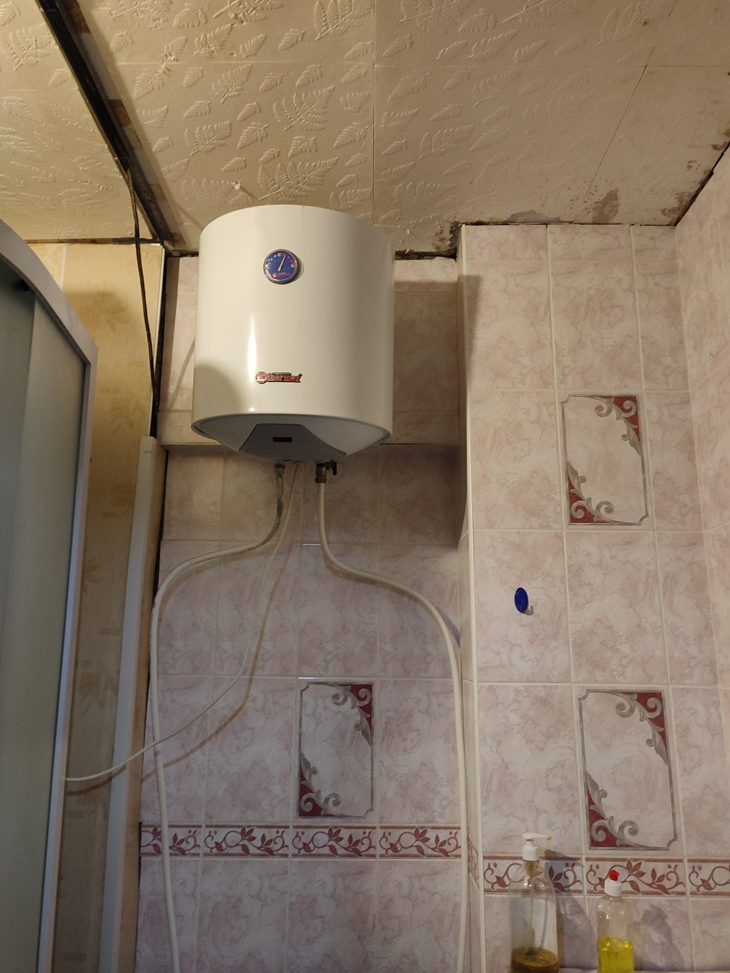 санузел на 2 комнаты  - совмещен, установлен водонагреватель, состояние см. фото.