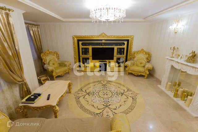 Напольное покрытие на кухне - керамогранит, сан.узел полностью в кафеле, на стене фреска ручной работы, в комнате - качественный ламинат, полностью оборудованная гардеробная, напольное покрытие в гостиной - мрамор.