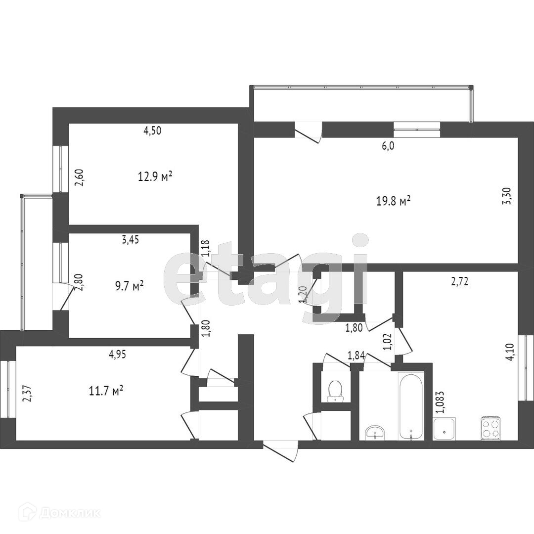 Продается просторная 4-х комнатная квартира, общей площадью 82,3 кв.м. в Аэропорту.