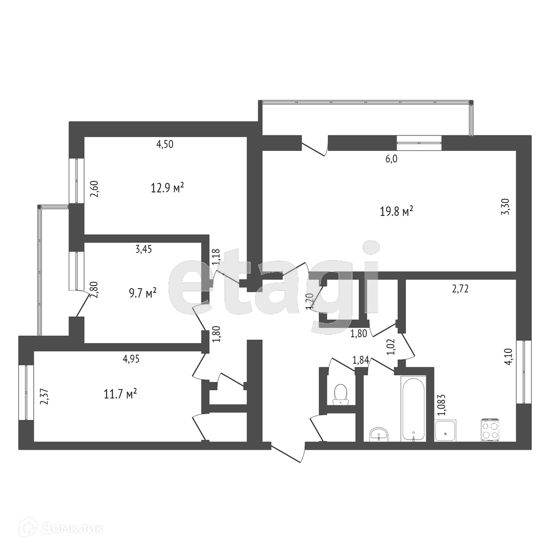Общая площадь 82.3 м2