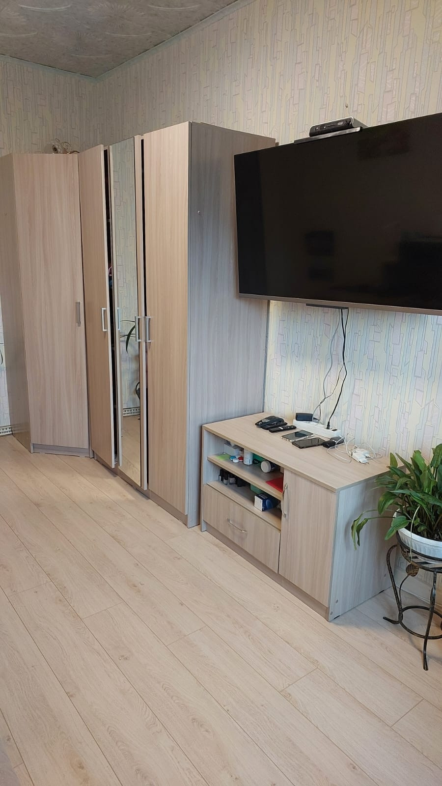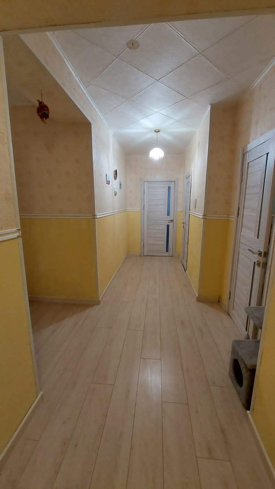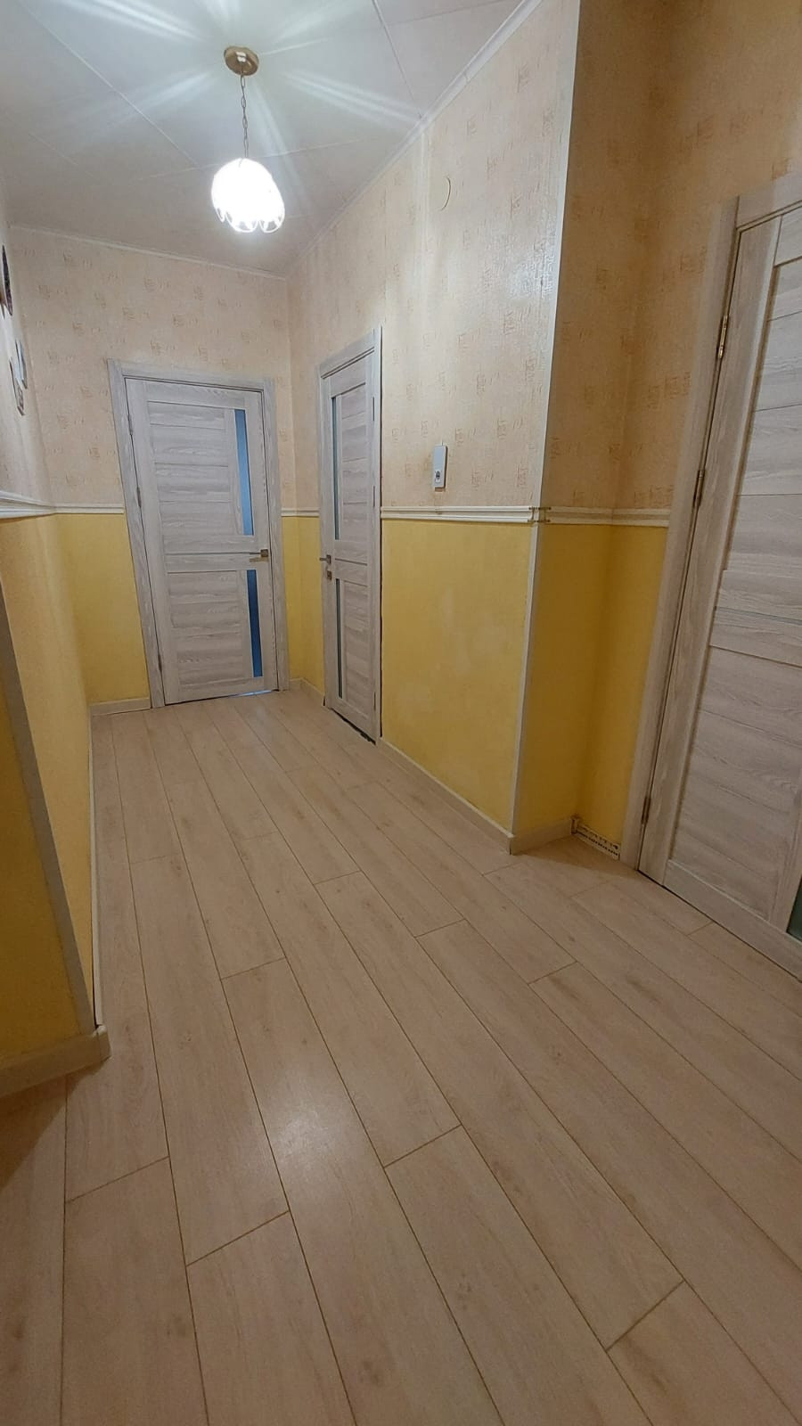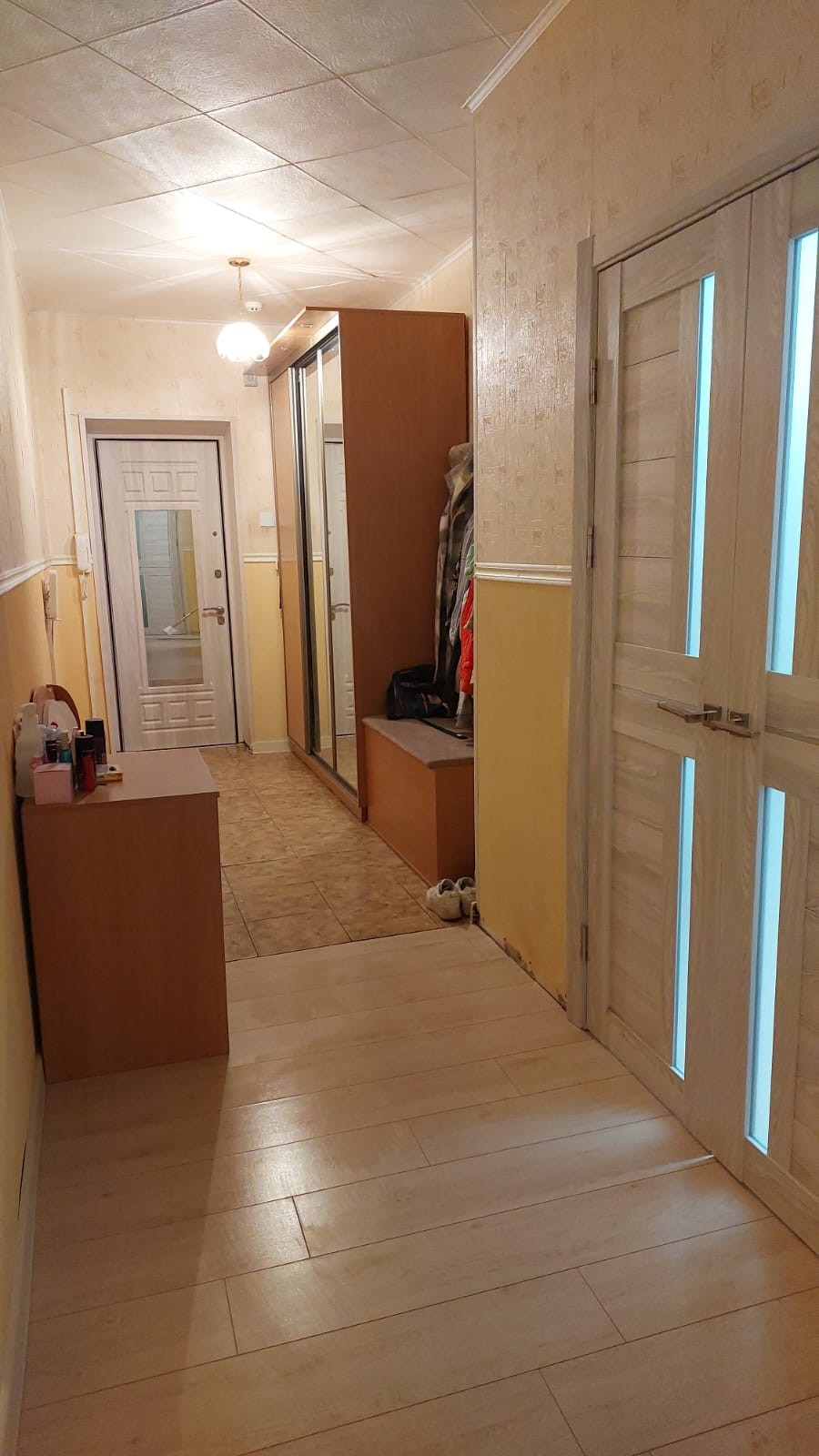 В квартире счётчики: на холодную и горячую воду, отопление. В коридоре на свет. В квартире пожарная сигнализация автономная и пожарный гидрант. Льготный тариф на свет из-за электроплиты. По квартире обогреваемые водяные полы. Окна пластиковые, балкон застеклен и электрифицирован. Имеется электронагреватель болерного типа на время отключения горячей воды на ремонтные работы. Возле каждой комнаты спальни есть кладовка, всего 2 шт. Двери 10 шт. новые установлены июнь 2023 как и входная металлическая с зеркалом. На кухне плитка на полу, в комнатах ламинат, положен в мае 2023.В коридоре, часть прихожей плитка. Установлены новые батареи, 2 в зале, одна на кухне и по одной в каждой спальне. Всё батареи с возможностью отключения по желанию собственника, так и с возможностью отключения всего отопления по квартире в любой момент. Просто перед счётчиком закрыть вентиль.
