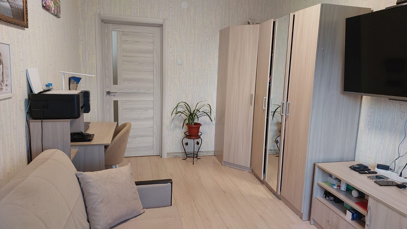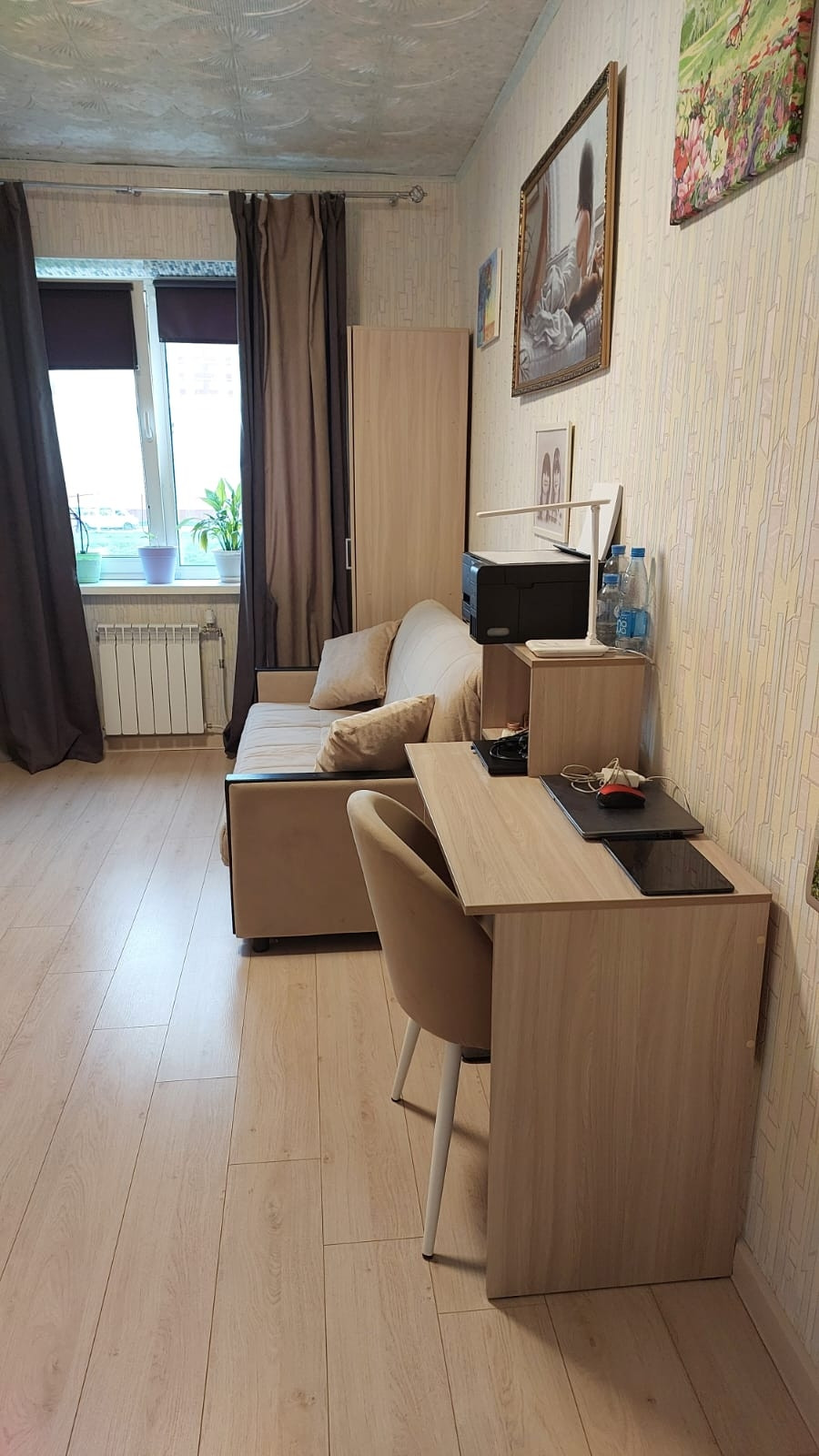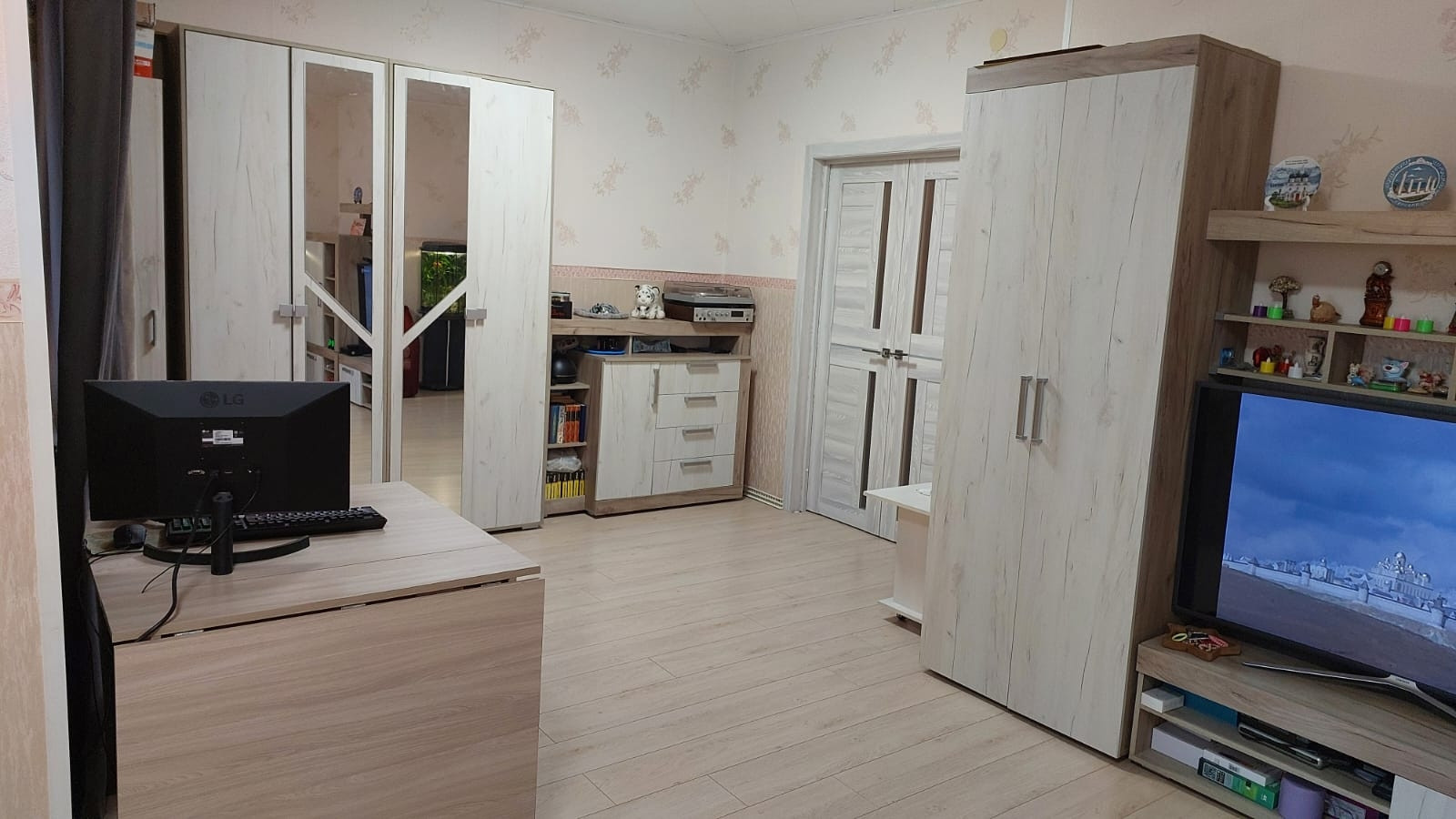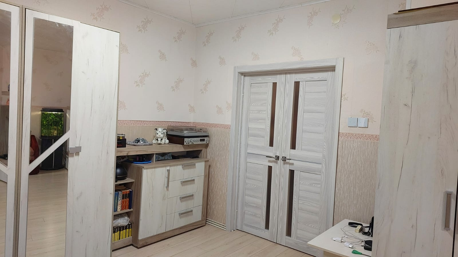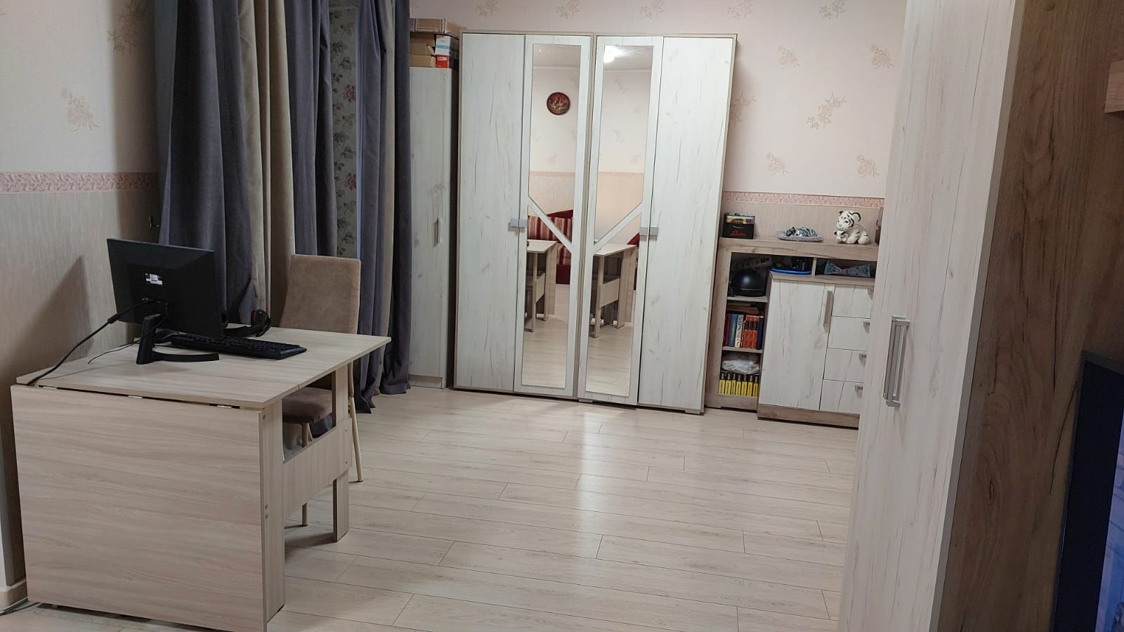В квартире счётчики: на холодную и горячую воду, отопление. В коридоре на свет. В квартире пожарная сигнализация автономная и пожарный гидрант. Льготный тариф на свет из-за электроплиты. По квартире обогреваемые водяные полы. Окна пластиковые, балкон застеклен и электрифицирован. Имеется электронагреватель болерного типа на время отключения горячей воды на ремонтные работы. Возле каждой комнаты спальни есть кладовка, всего 2 шт. Двери 10 шт. новые установлены июнь 2023 как и входная металлическая с зеркалом. На кухне плитка на полу, в комнатах ламинат, положен в мае 2023.В коридоре, часть прихожей плитка. Установлены новые батареи, 2 в зале, одна на кухне и по одной в каждой спальне. Всё батареи с возможностью отключения по желанию собственника, так и с возможностью отключения всего отопления по квартире в любой момент. Просто перед счётчиком закрыть вентиль.