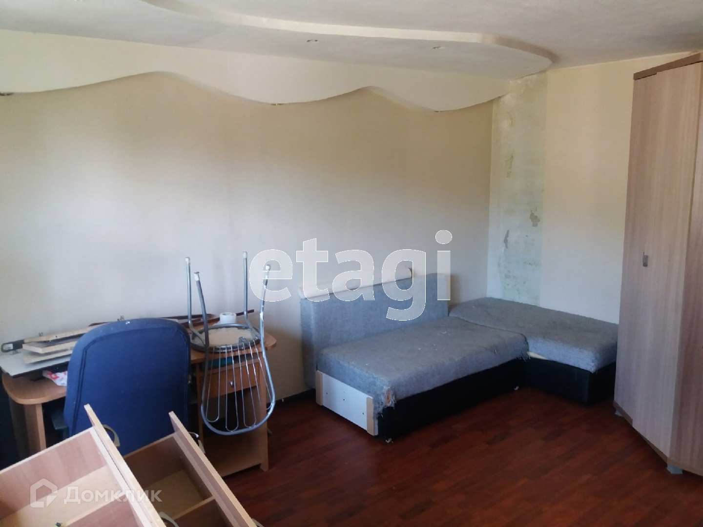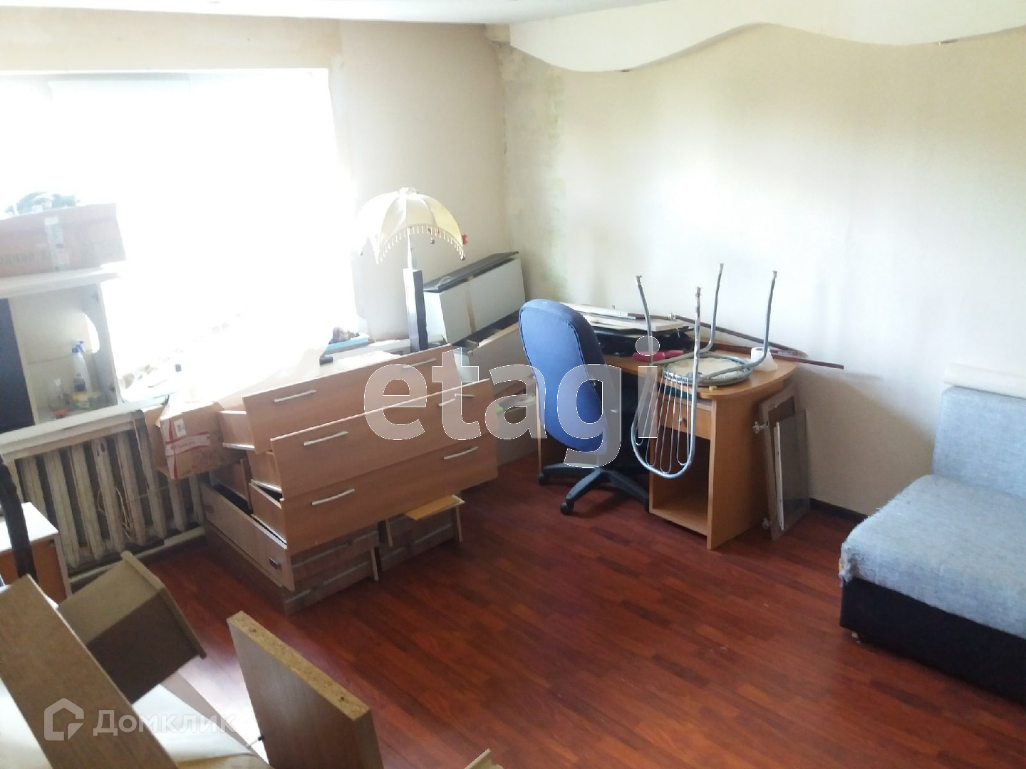 Пол - ламинат, окна - ПВХ.