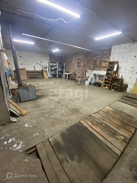 Два гаража объединены в один, общая площадь 60 кв.м., Ширина 10 метров, длина 6. Двое ворот распашные 2.6 х 2.25 утеплённые, снаружи обшитые металлом, крыша не течет. Отопление печное, в гараже зимой 0 градусов. Выведено электричество индивидуальное. Сухой подвал в площадь гаража, весной не топит.