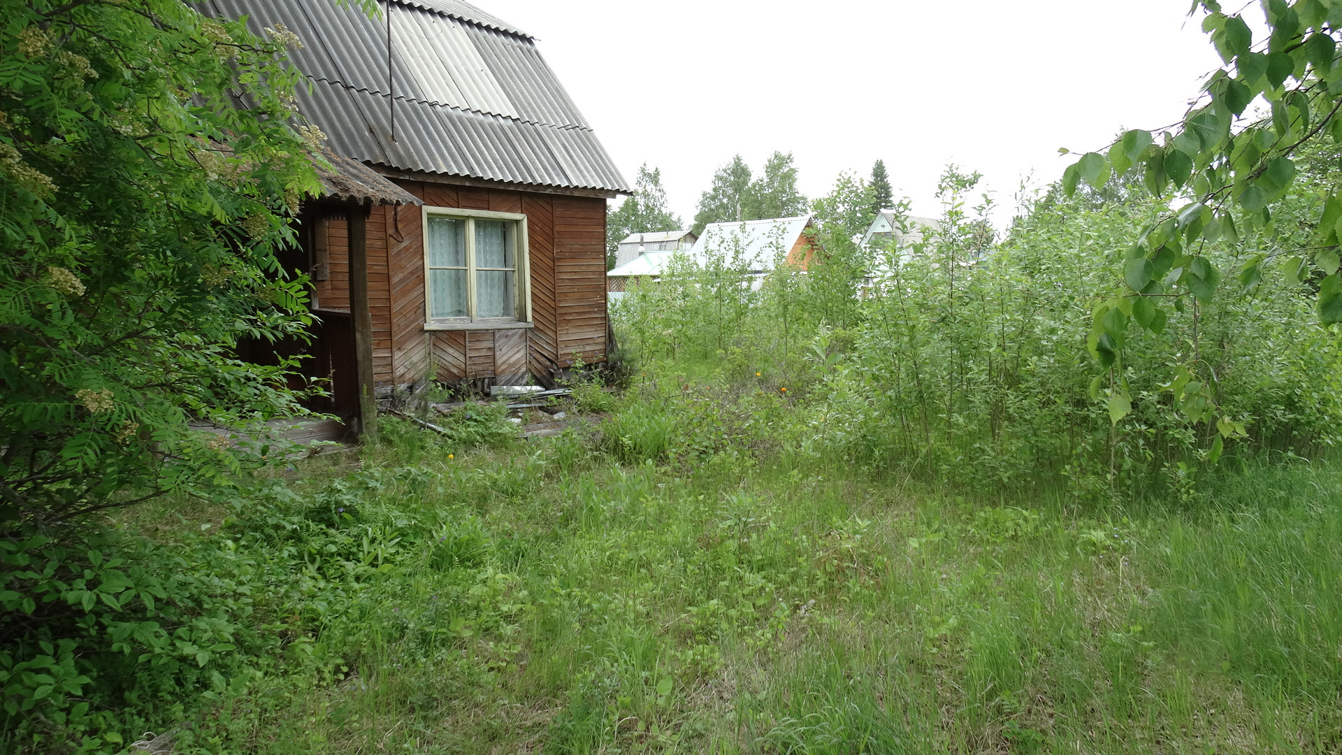 Земля не разрабатывалась 2 года, на участке двух этажный дом из бревна, свет, централизованная вода.