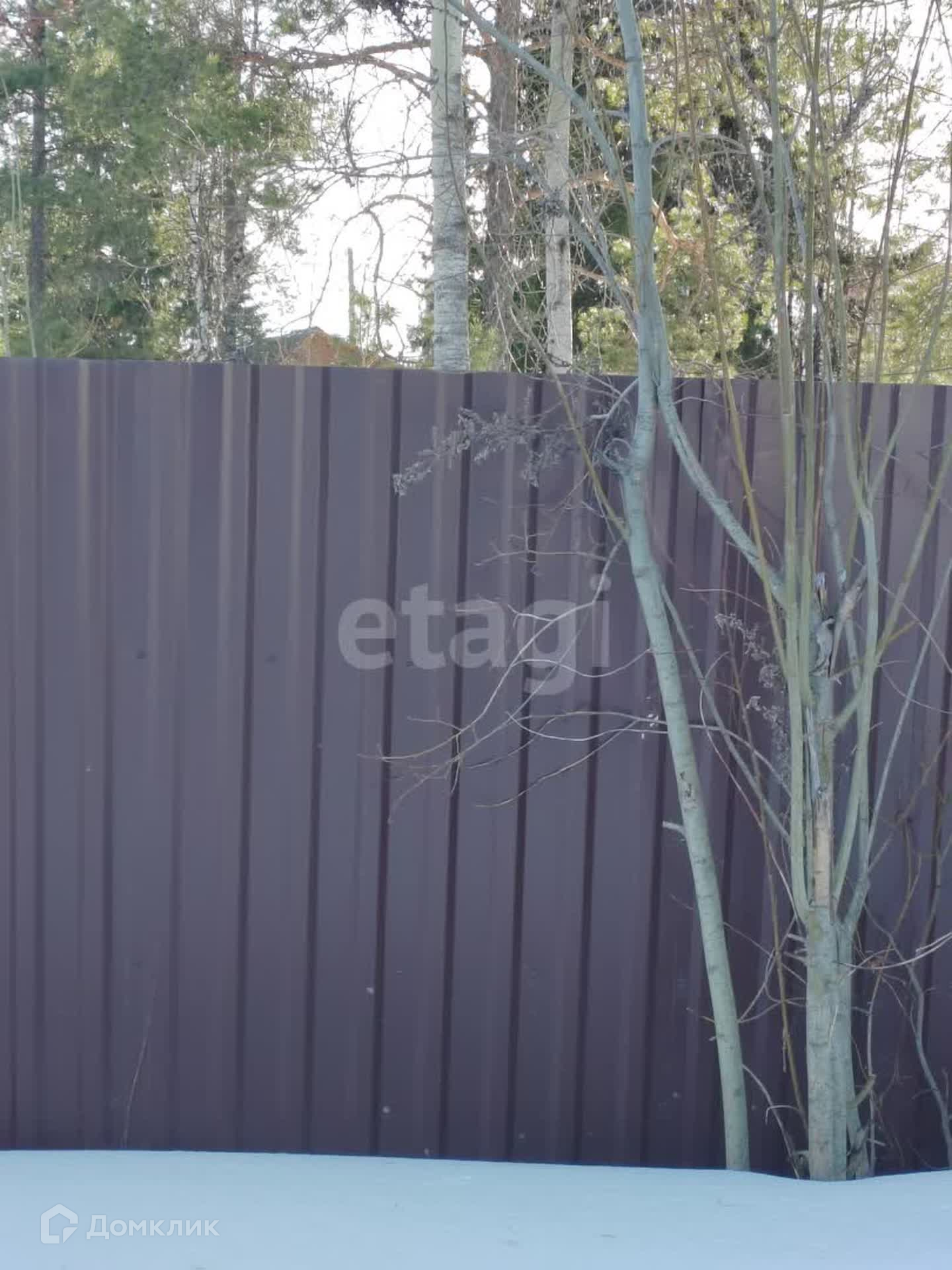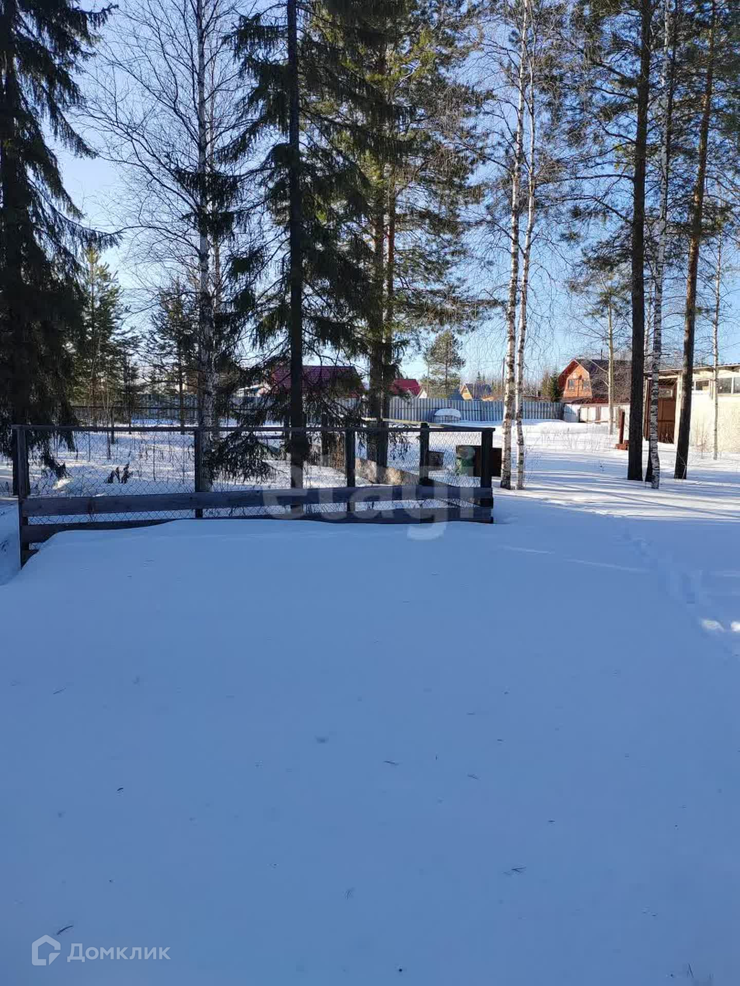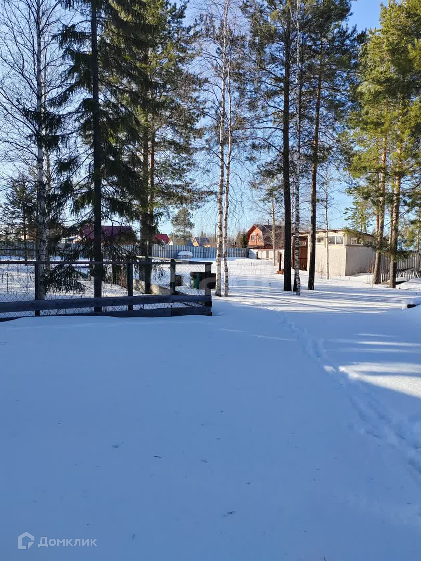Участок с трех сторон обнесен забором из профнастила. Имеются хозяйственные постройки. На участке растут красивые сосны. Подъезд круглогодичный, дорога ухоженная.