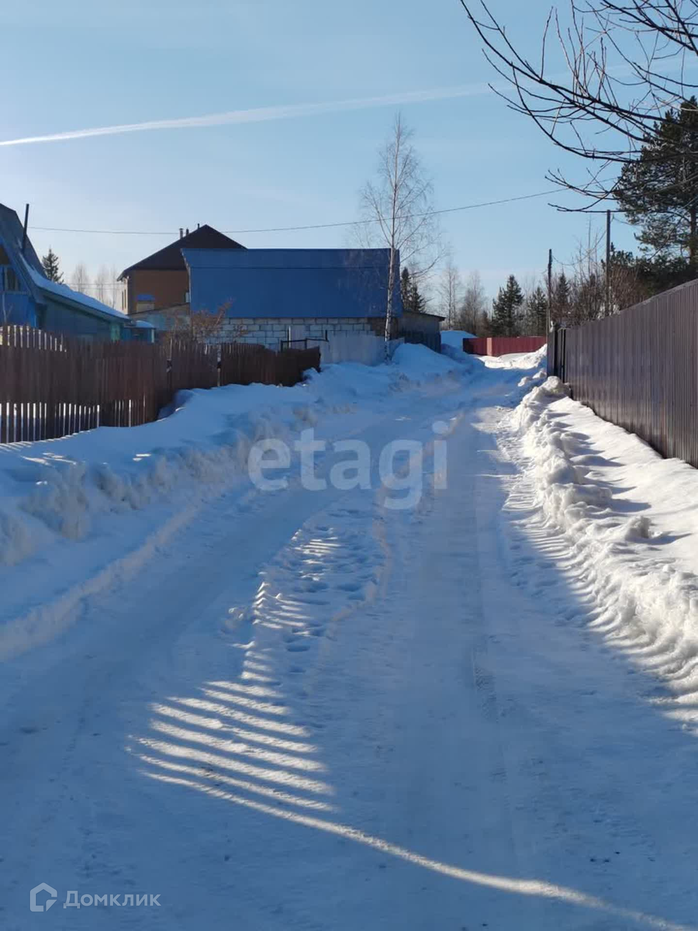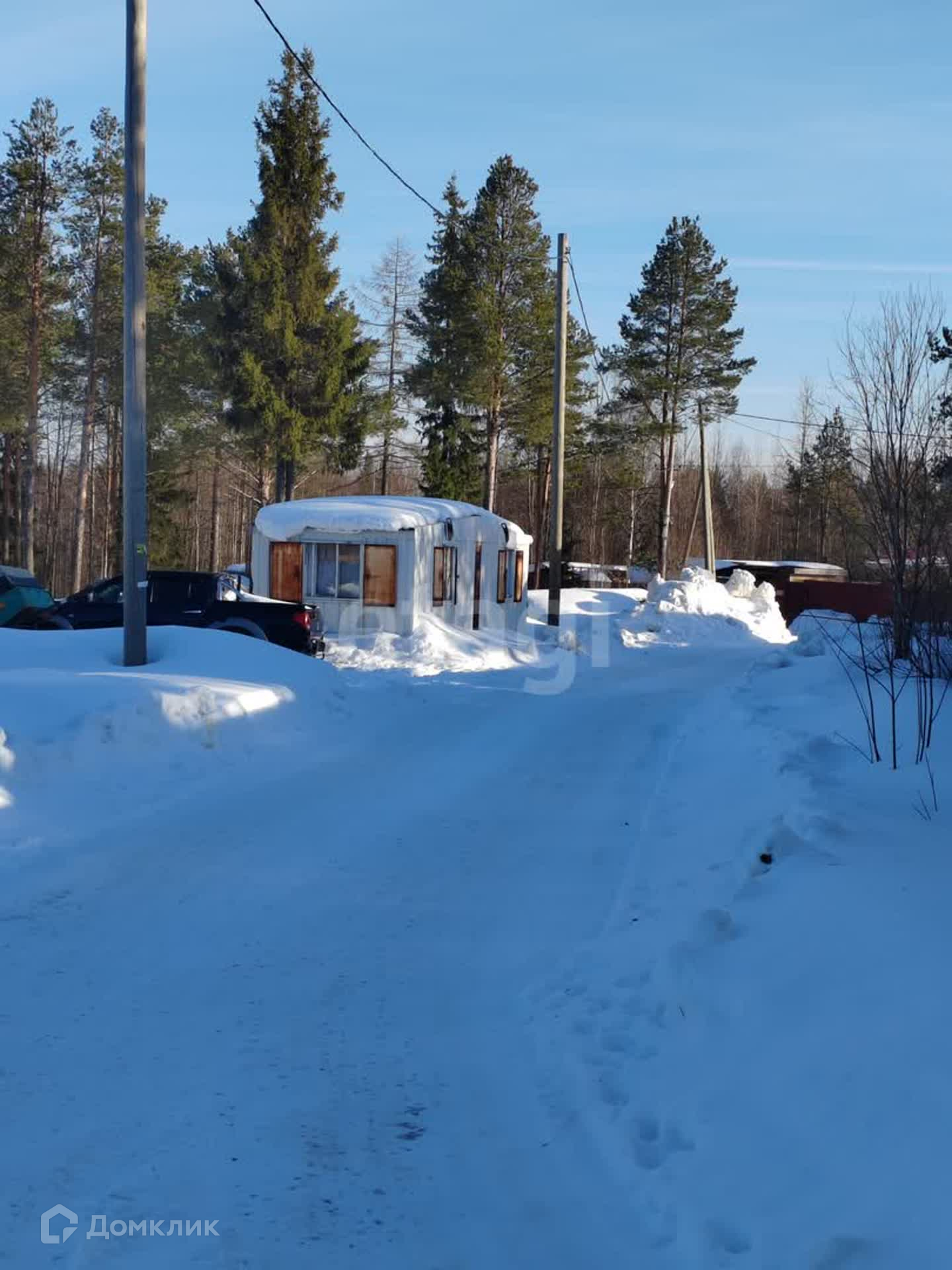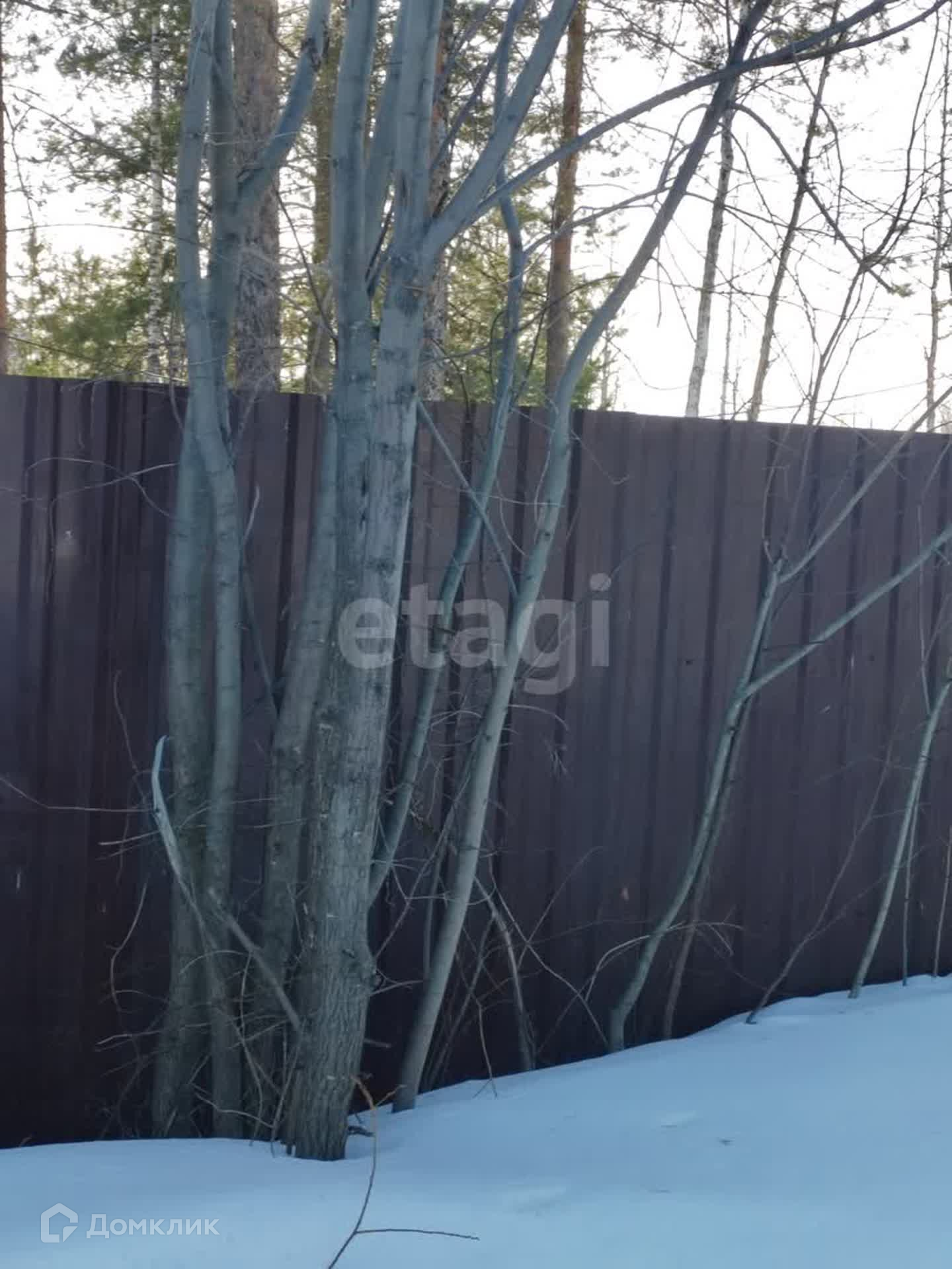 Участок с трех сторон обнесен забором из профнастила. Имеются хозяйственные постройки. На участке растут красивые сосны. Подъезд круглогодичный, дорога ухоженная.