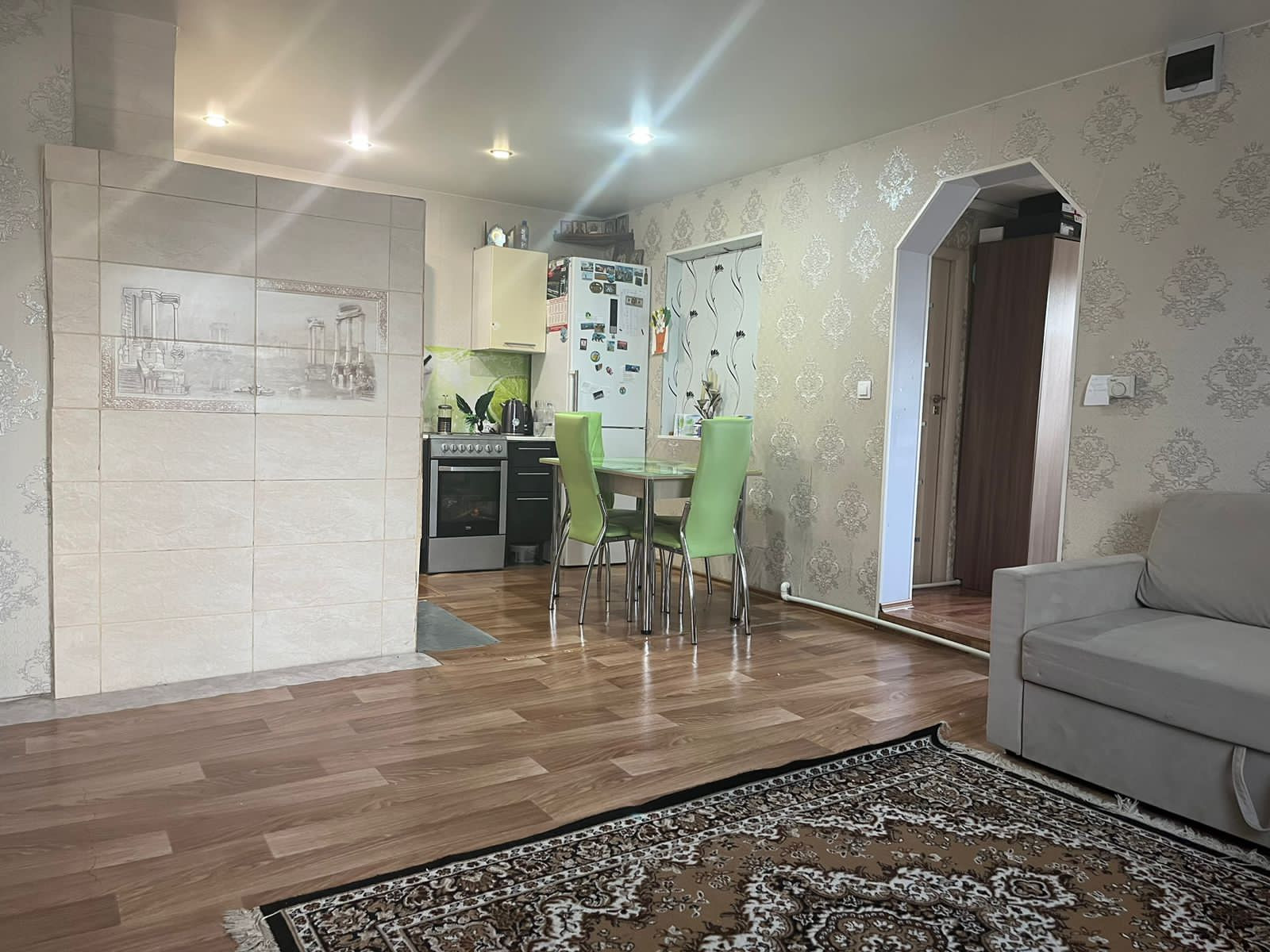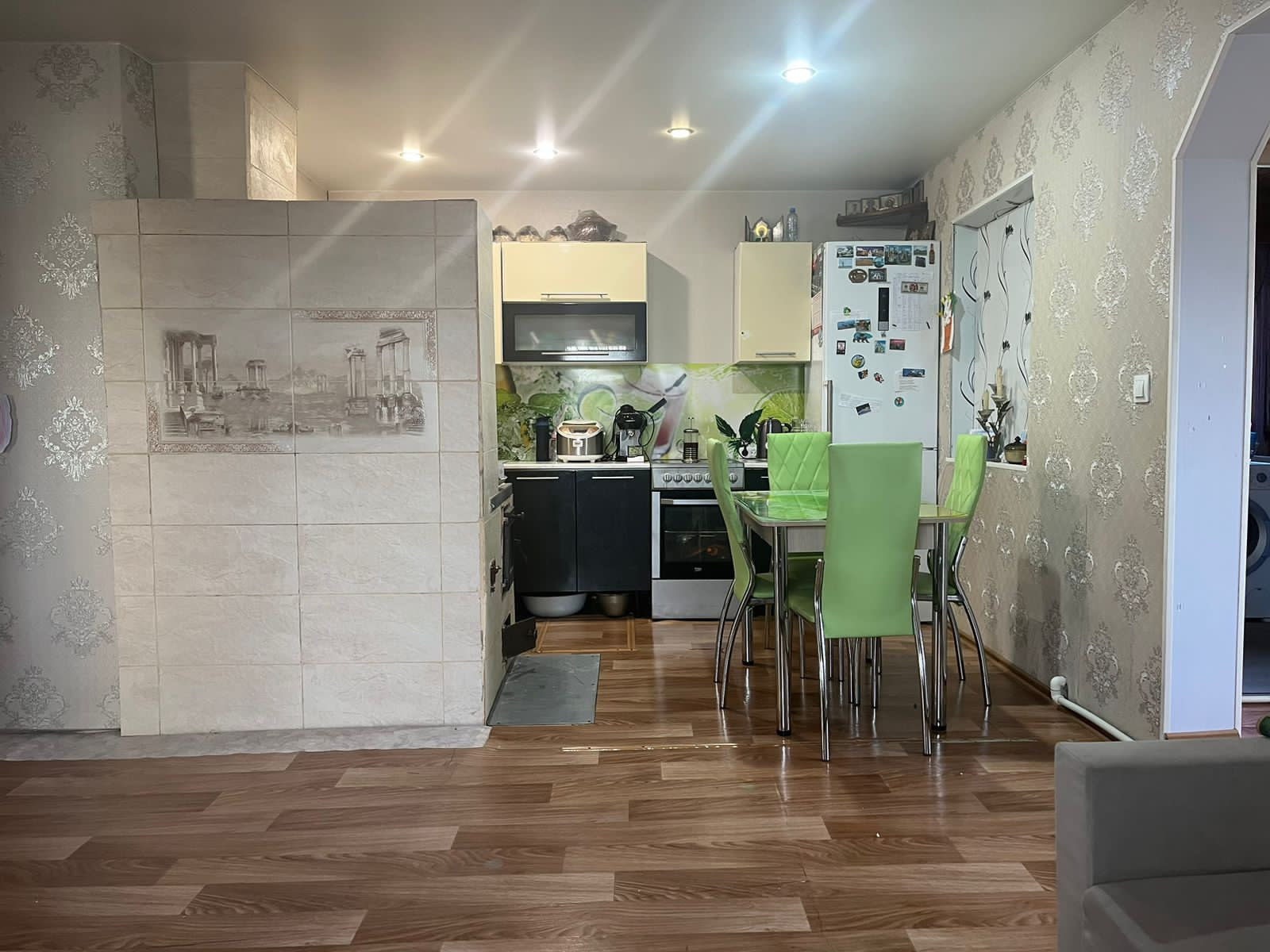 Продается хороший благоустроенный семейный дом площадью 67м2. В доме две просторные комнаты ,большая гостиная ,кухня, прихожая и ванная комната где установлена душевая кабина, унитаз,раковина. Веранда с переходом в гараж.