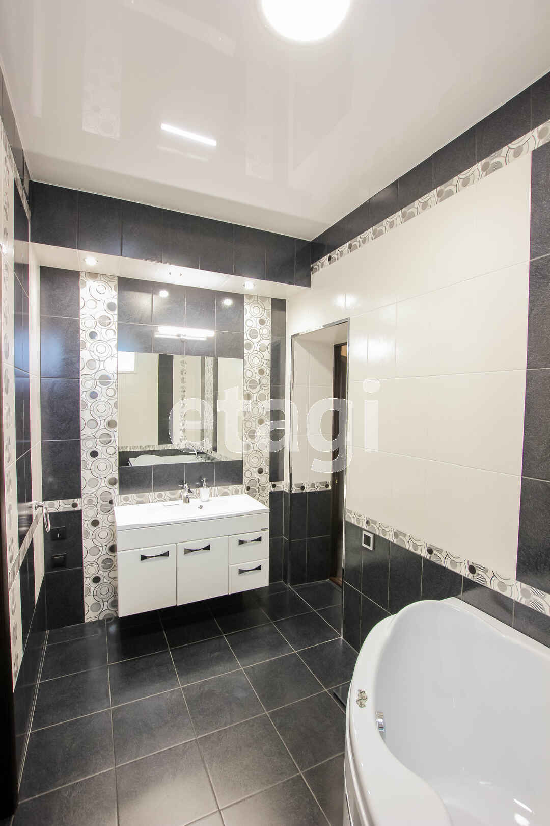 Дом отделан высококачественными материалами: пол первого и цокольного этажа из керамогранита, второго этажа из дорогого ламината. Стены во всех помещениях отделаны декоративной штукатуркой различных фактур(от шелковой до мраморной). Дом очень теплый и светлый.