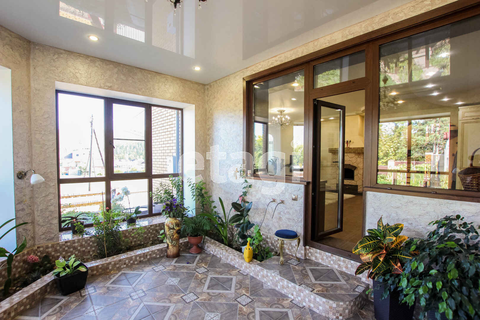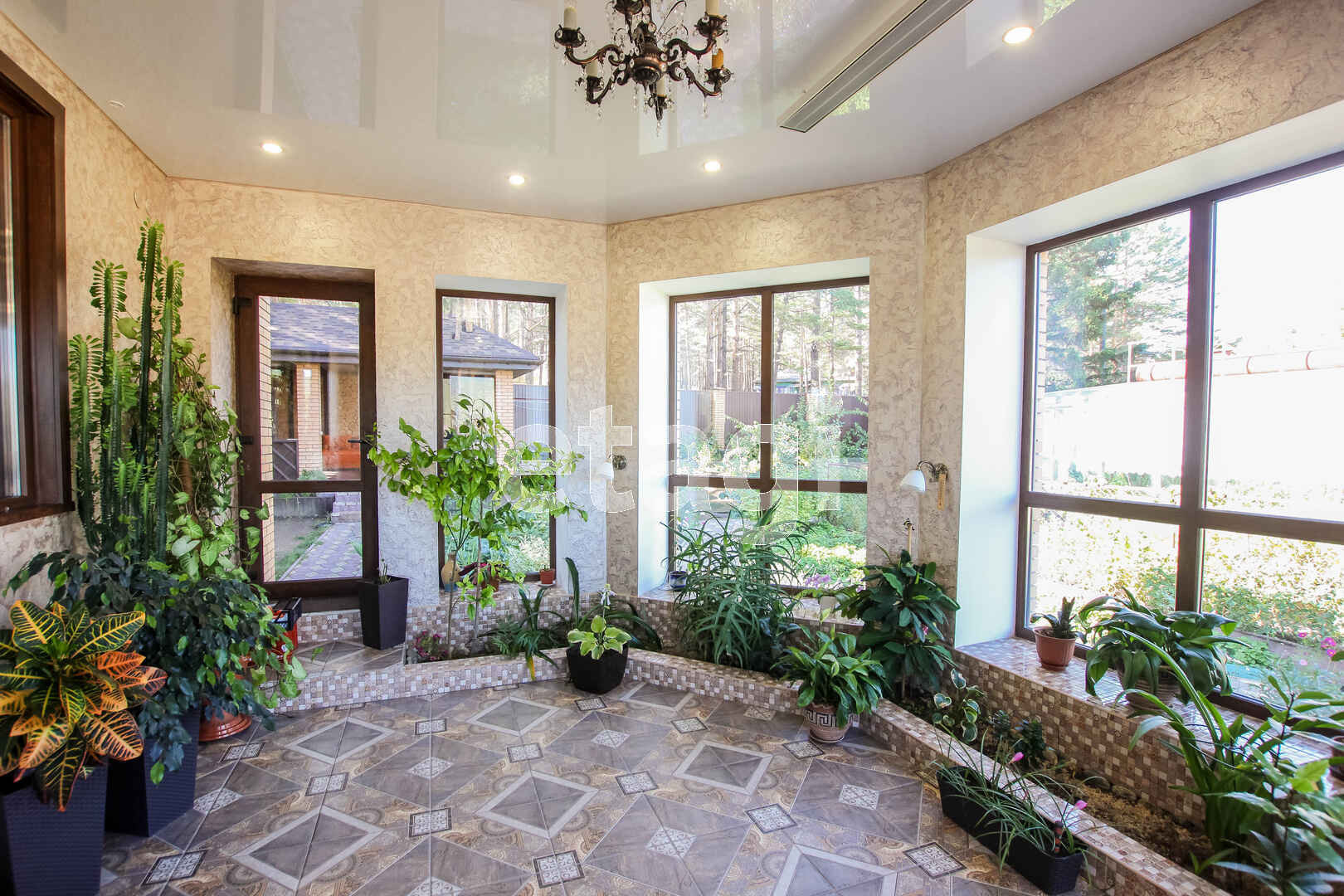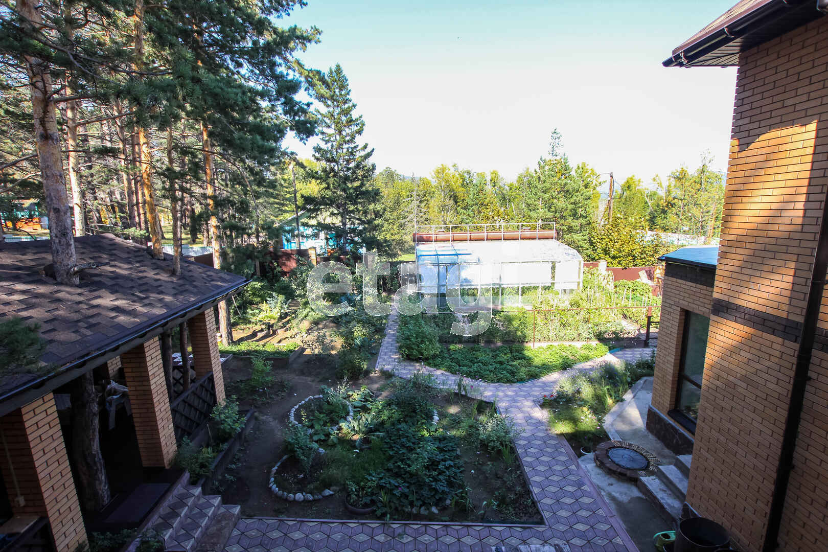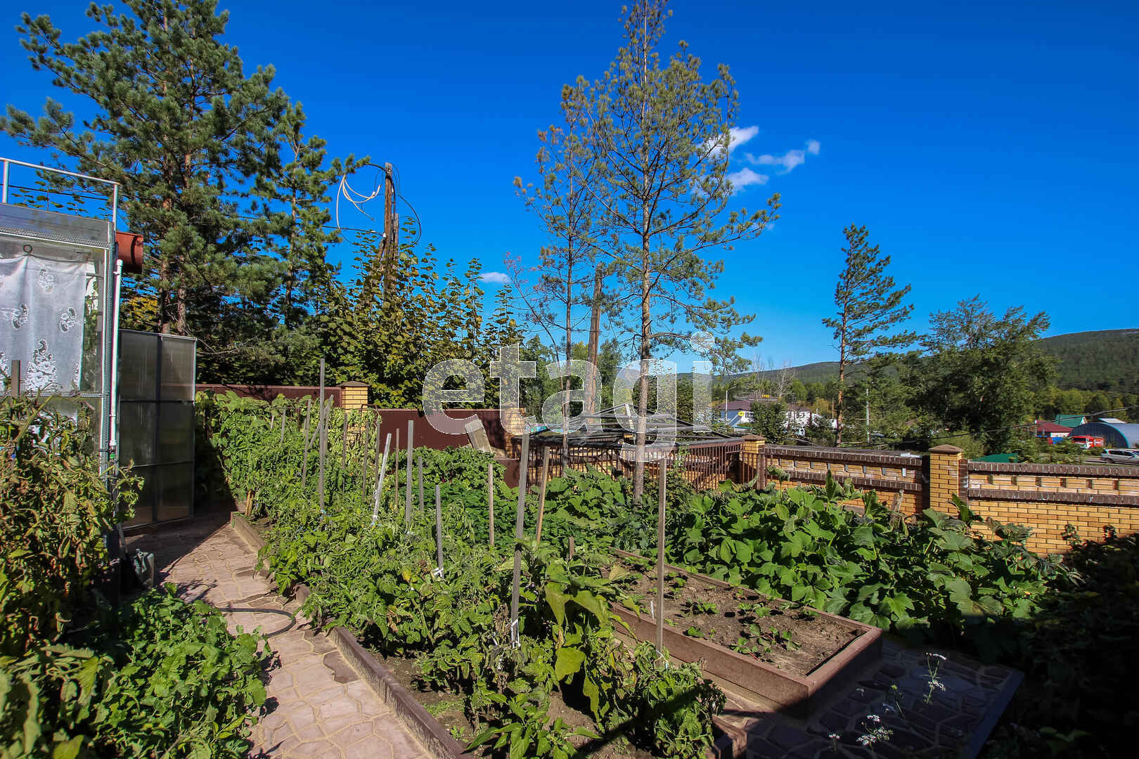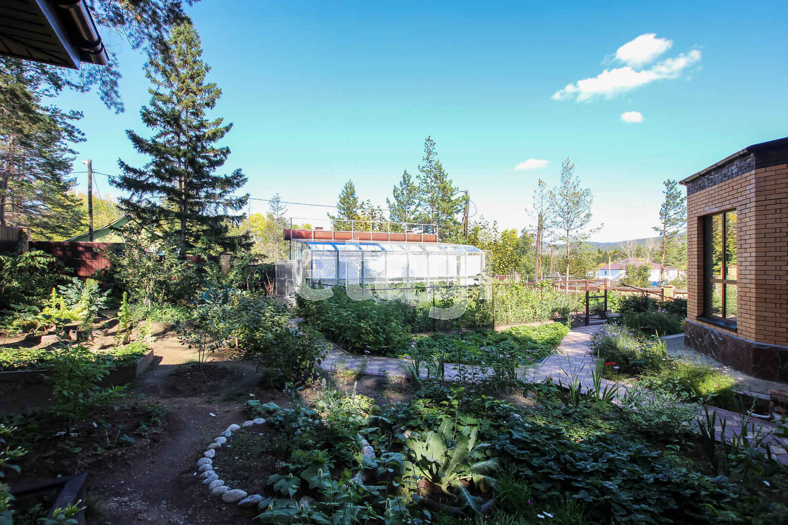 На участке расположена уютная беседка с мангальной зоной, водопроводом (горячая и холодная вода), водоотведением, электричеством и газовой плитой. Весь участок засажен плодовыми деревьями и кустарниками, многолетними цветами, клубникой и земляникой. На участке есть огромная стеклянная теплица, оформленные грядки. Ко всем посадкам подведена вода для полива. Весь участок, включая огород, благоустроен тротуарной плиткой.