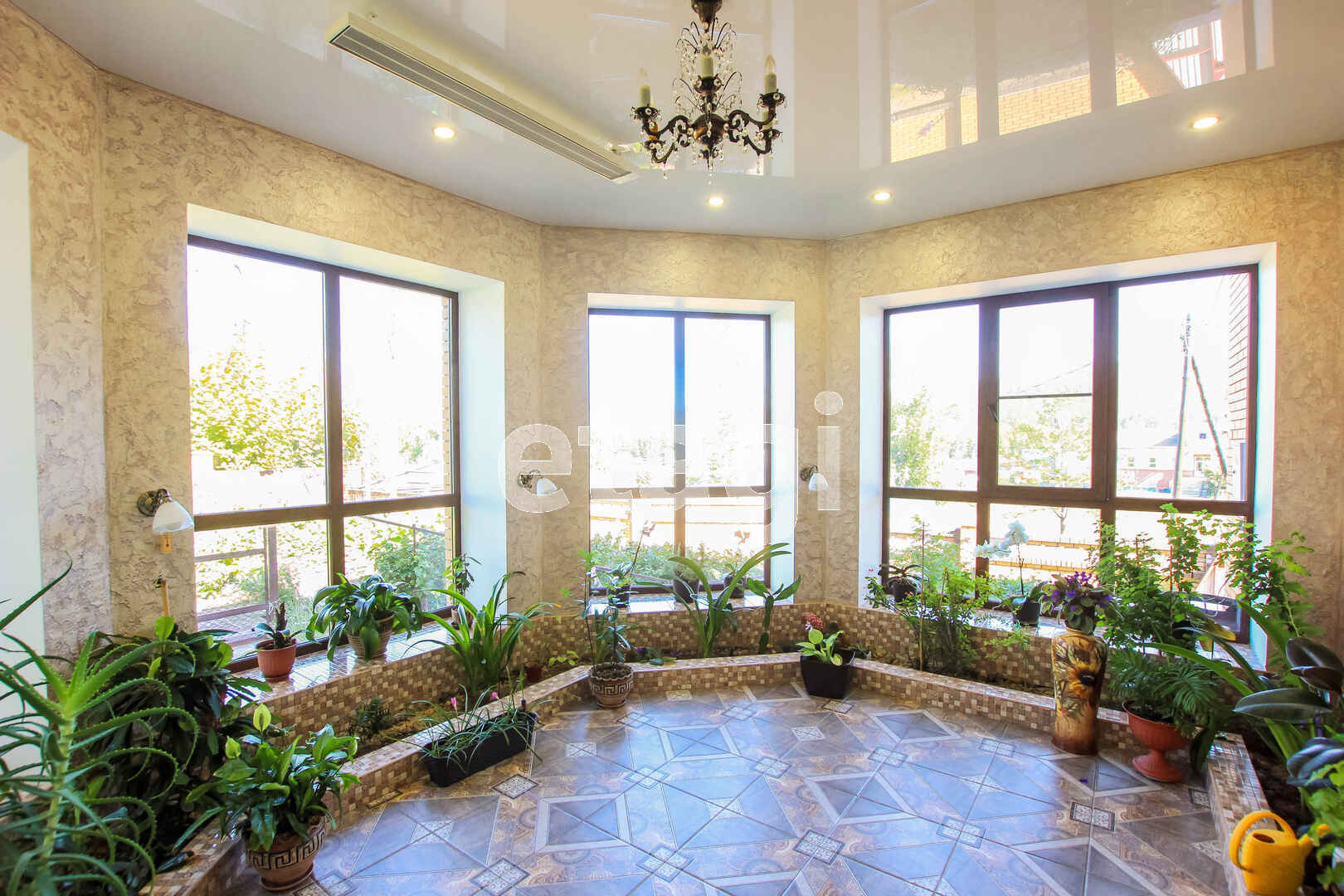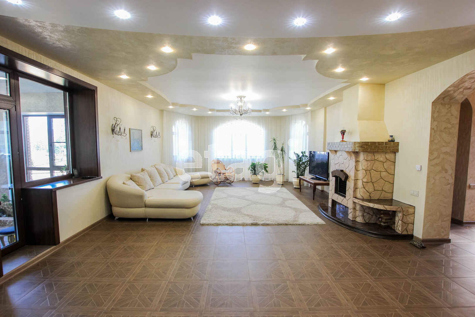 В доме 3 этажа. На первом этаже просторная кухня-гостиная с камином, зимний сад с живыми растениями, прихожая с гардеробом, санузел с отделенной технической зоной. На втором этаже три спальни с террасами, гардеробная комната, просторный холл, большая ванная комната с отделенной технической зоной. На цокольном этаже гараж на 4 большие машины, котельная, хоз. комната. К дому пристроена двухэтажная зона отдыха. На первом этаже бассейн и баня, отделанная липой, на втором этаже комната отдыха с санузлом.