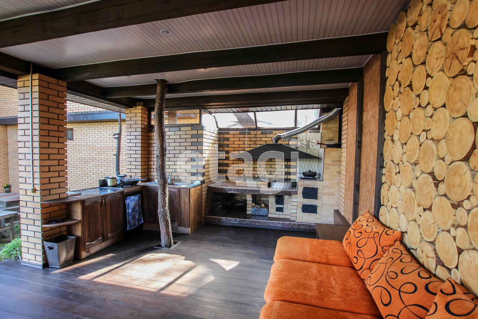 Дом полностью кирпичный, фундамент из блоков ФБС перекрытия жб плиты, стропильная крыша отделана мягкой кровлей Shinglas. Отопление: твердотопливный котел и электрокотел. Во всем доме водяные теплые полы, температура воздуха задается индивидуально в каждом помещении. Водоснабжение: скважина. Вода нагревается от солнечных батарей, расположенных на крыше, либо от электричества. Имеется механическая система вентиляции влажных помещений и кухни. Видеозвонок.