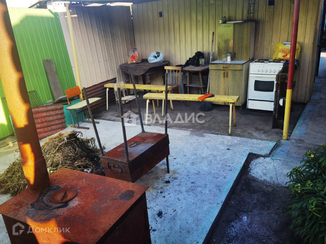 Две ёмкости под воду, кладовая, мангальная зона, так же новому хозяину остаётся большой запас дров, хозяйственный инвентарь.