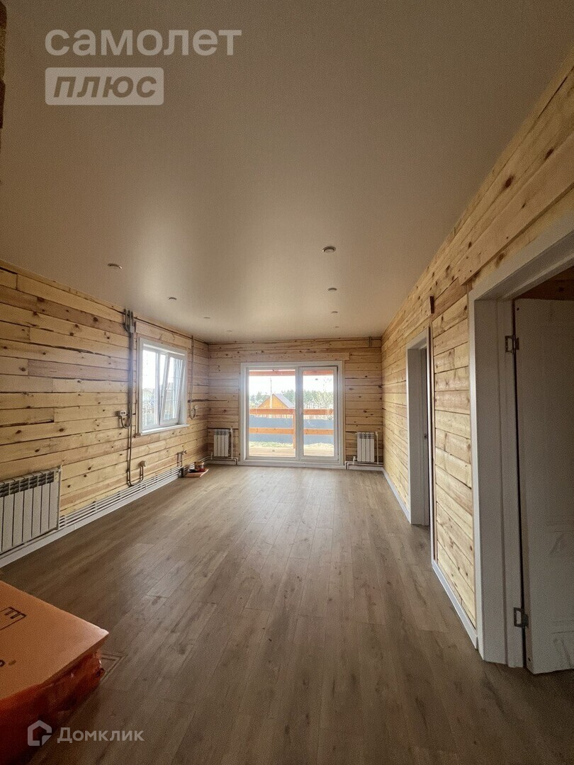 - По всему дому уложен ламинат 33 класса, в с/у на полу линолеум, во всех помещениях матовые натяжные потолки белого цвета с точечными светильниками.