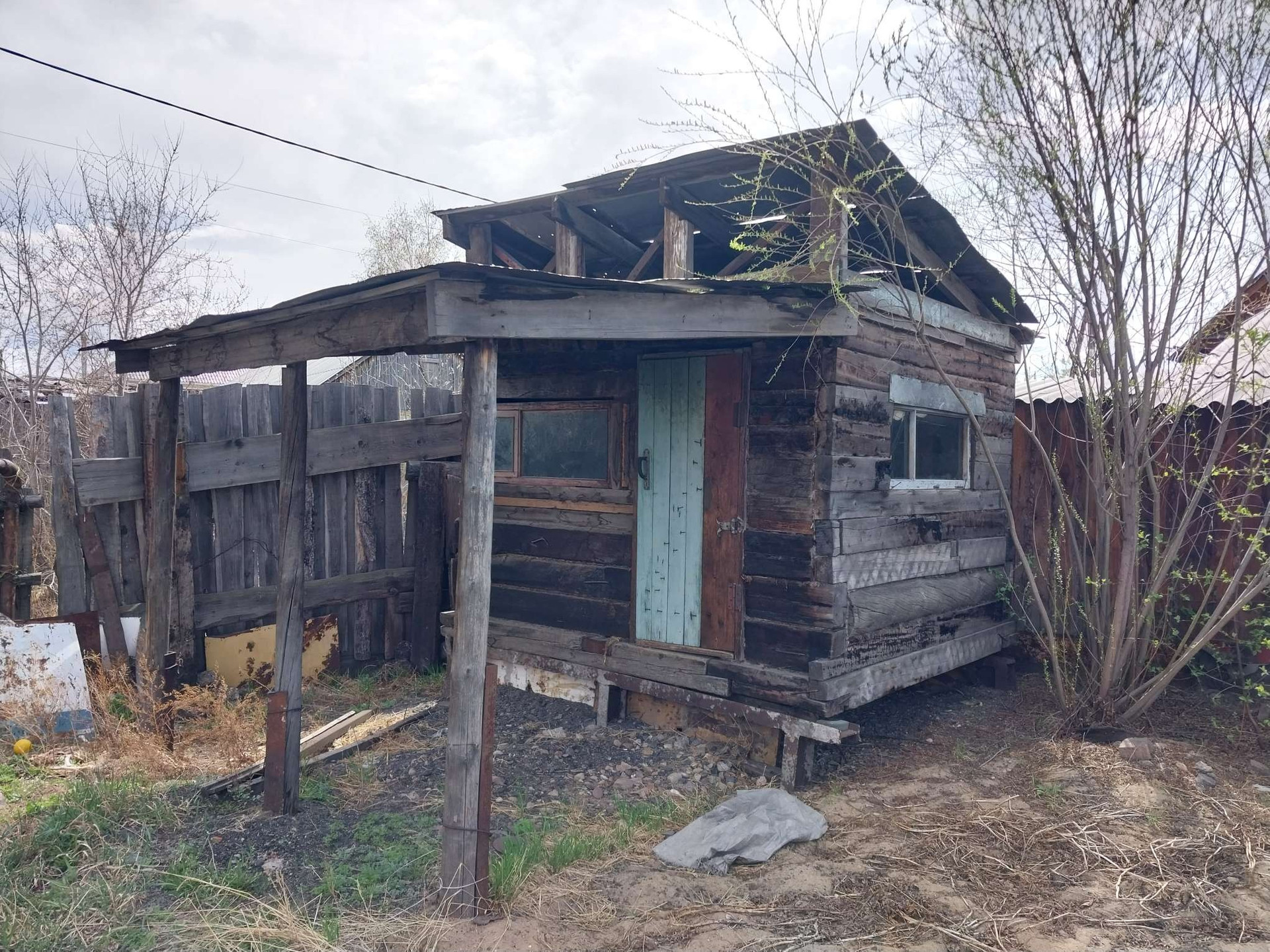Также есть каркас бани с крышей.