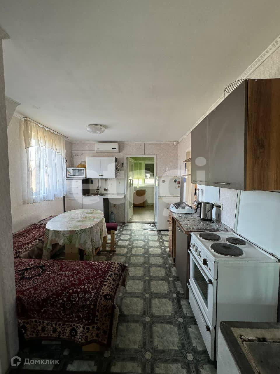 В доме все готово к проживанию. На первом этаже гараж на две машины и мастерская. Также имеется баня с просторным предбанником и большая беседка. Жилые помещения находятся на втором этаже: две спальни, кухня-гостиная и туалет-ванная, две лестницы (парадная и в гараж). Водоснабжение - скважина, насосная станция, есть горячая вода (водонагреватель). На окнах стеклопакеты, рольставни. Установлен кондиционер, печное отопление, канализация, выгребная яма. Дом находится под охраной, установлена сигнализация с датчиками периметра и объема.