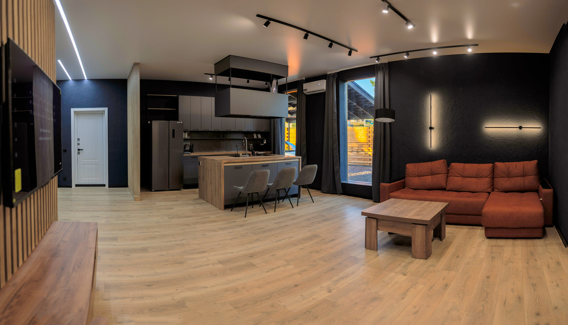 Декоративные штукатурки различных видов, декоративные рейки и крупноформатный керамогранит придают дому изысканный и современный вид. Каждый элемент интерьера продуман до мелочей, чтобы создать атмосферу уюта и комфорта.