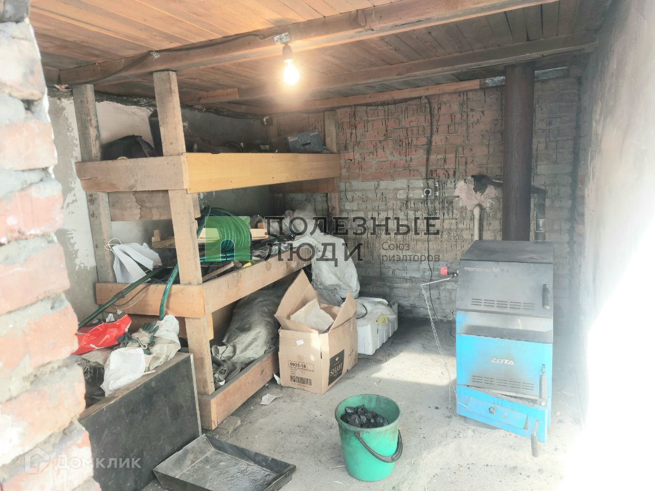 На участке гараж с плитами перекрытия, выгребная яма, огород.