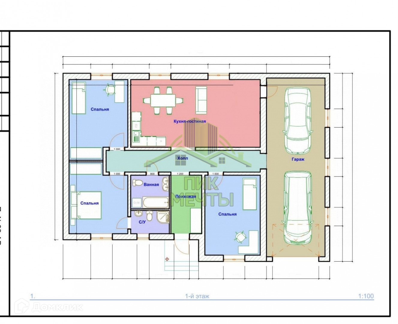 Планировка свободная, межкомнатных перегородки все сделаны из полистиролбетона, 3 спальни, одна спальня с гардеробом и отдельным санузлом, просторная гостиная-кухня с панорамным окном, в доме два санузла.  Комнаты все изолированные через коридор, из дома есть выход в гараж. Установлены окна пяти камерные "Века". Входная дверь металлическая утеплённая с терморазрывом.