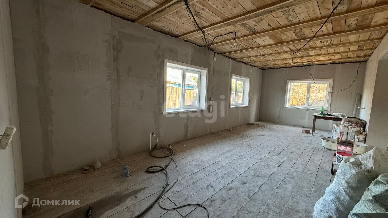 Дом 2024 года постройки. Материал стен арболит. В доме 2 комнаты, кухня-студия, санузел совмещен.