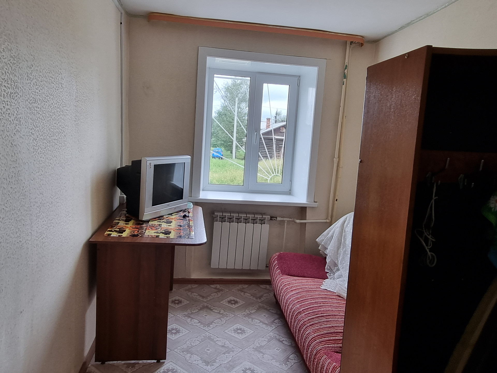 Продам п/благ комнату коридорного типа на Кирзаводе по ул. Кирпичная, 7а, 1/4 кирпич.дом, общ.пл. 9,5 кв.м, окно пластиковое, решетки, полы-линолеум, отопление центральное, вода в комнате, есть раковина, туалет на улице, эл/счетчик в комнате, входная дверь металлическая, пустая