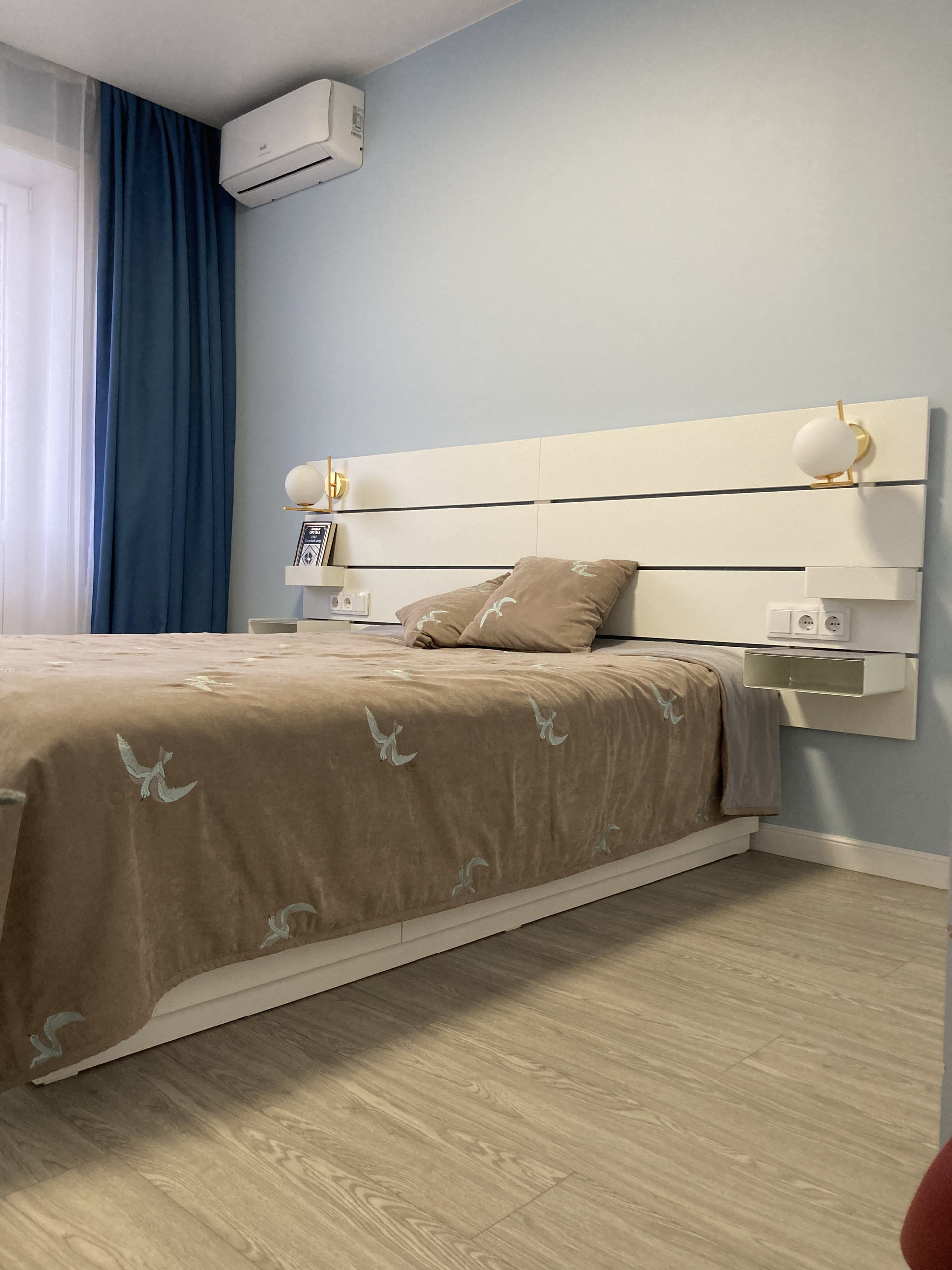 Остаются в квартире встроенные шкафы в прихожей и в спальне. Также кондиционеры в кухне и в спальне.