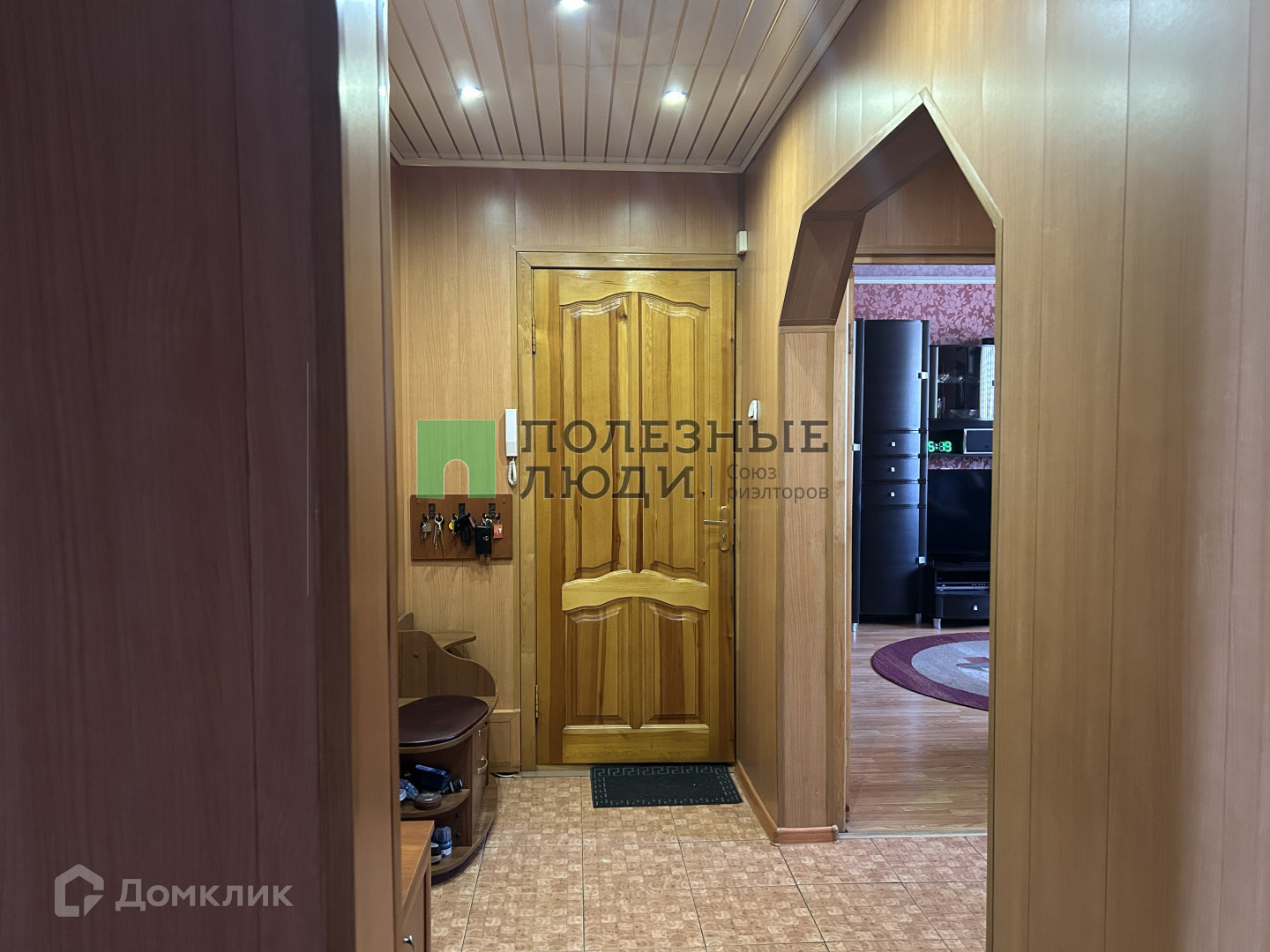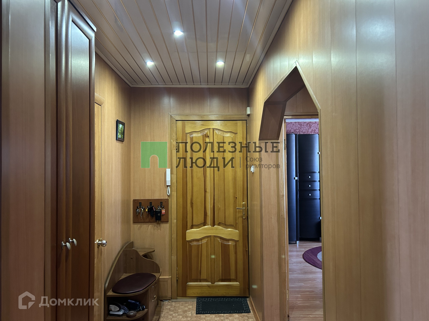 В квартире выполнен хороший косметический ремонт - стены выровнены, на полу во  всех комнатах ламинат, на кухне , в  просторной  прихожей , в ванной и санузле - плитка, потолки в комнатах и на кухне натяжные, в прихожей реечные. В коридорах имеются два  вместительных встроенных шкафа.