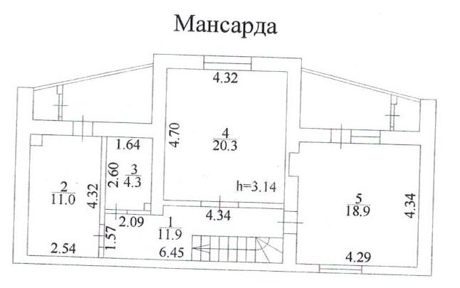 2 Уровень Мансарда S=66,4 м2, высота потолка 3,14 м