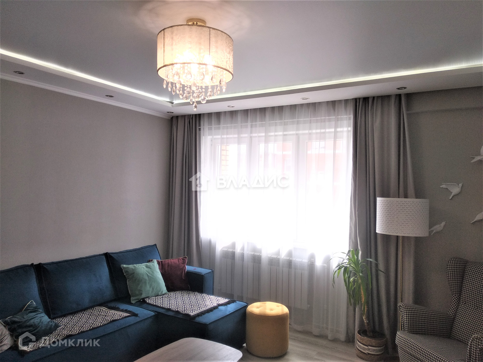 Большая теплая гостиная с парящим потолком, балкон, раздельный санузел.