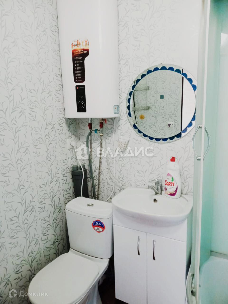 Санузел совмещён, установлен водонагреватель, душевая кабинка.