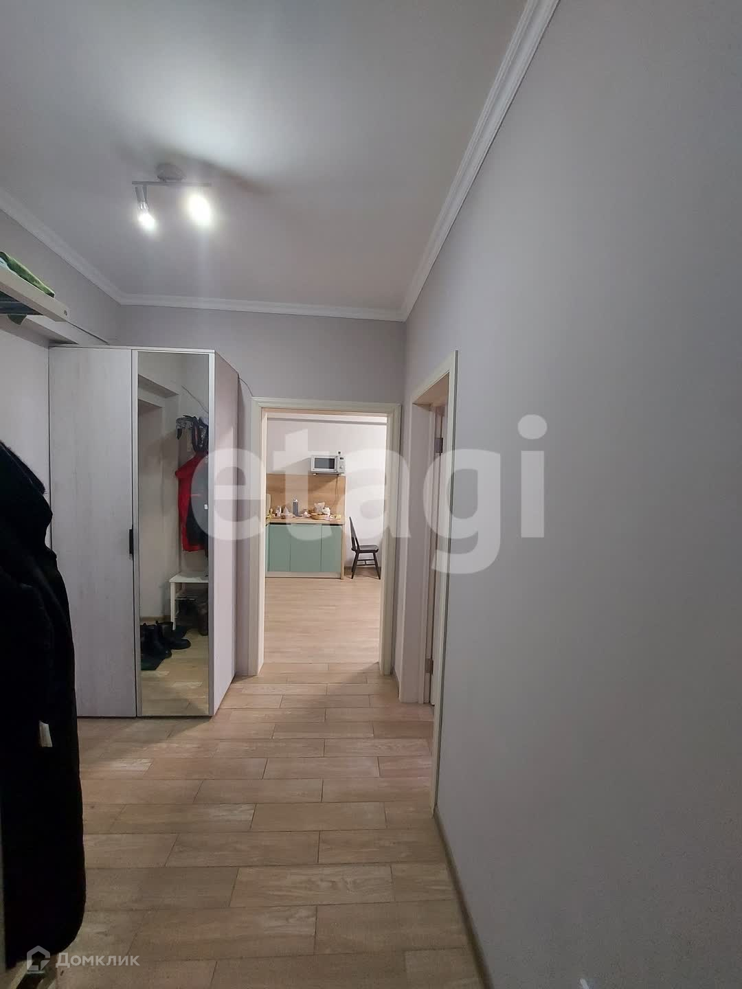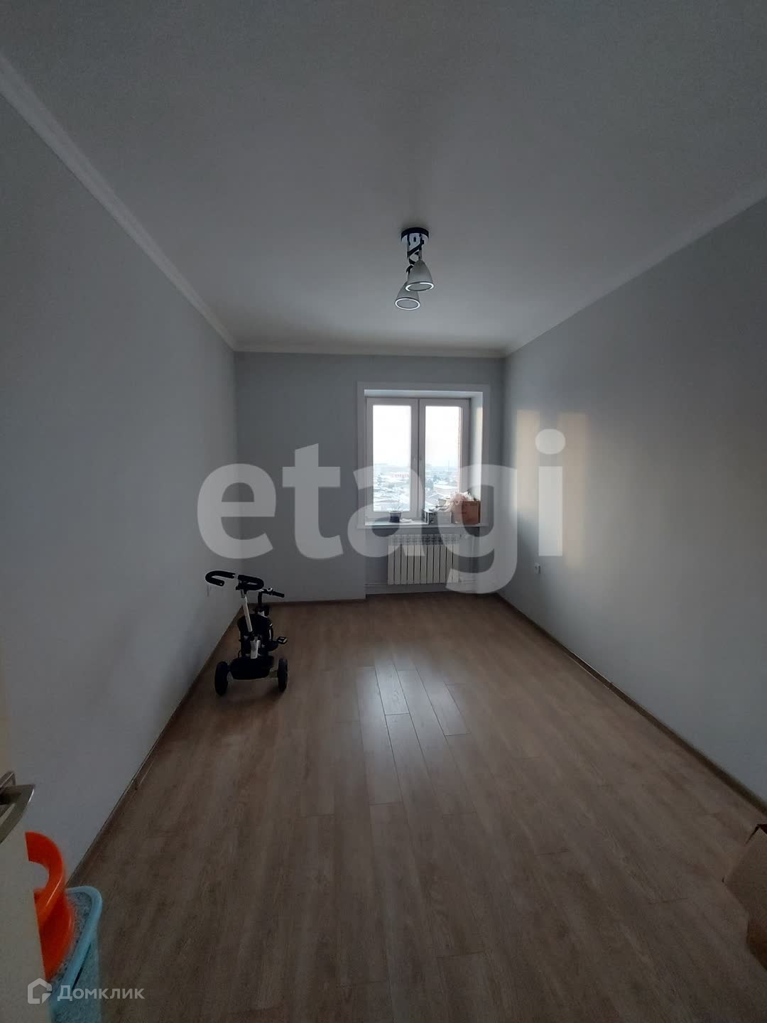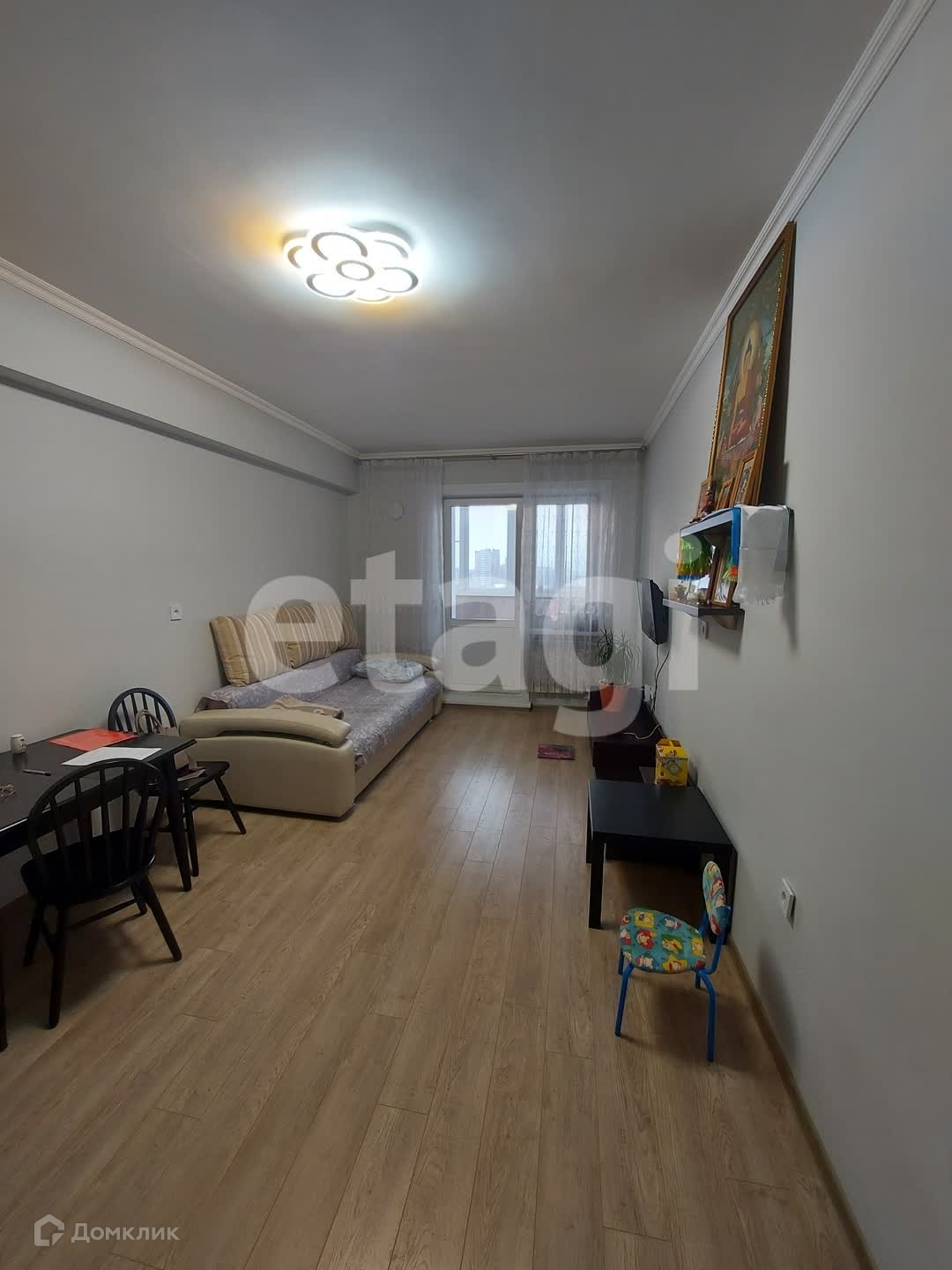 Квартира на 9 этаже нового дома, сверху есть технический этаж. Балкон утеплён и остеклён трехкамерными окнами. Во всех комнатах ламинат, в коридоре, туалете и ванной - плитка. В туалете и ванной дополнительно установлена вытяжка, которая включается со светом.