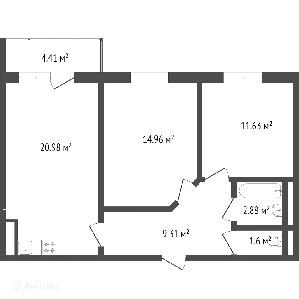 Общая площадь 60.8 м2