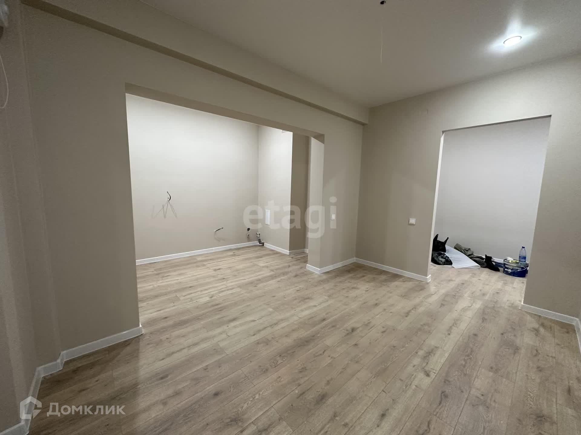 Качественный современный ремонт: стены выровнены и окрашены, натяжной потолок с точечным освещением, на полу ламинат, пластиковые стеклопакеты, биметаллические радиаторы. Санузел раздельный с новой сантехникой, облицован кафелем.