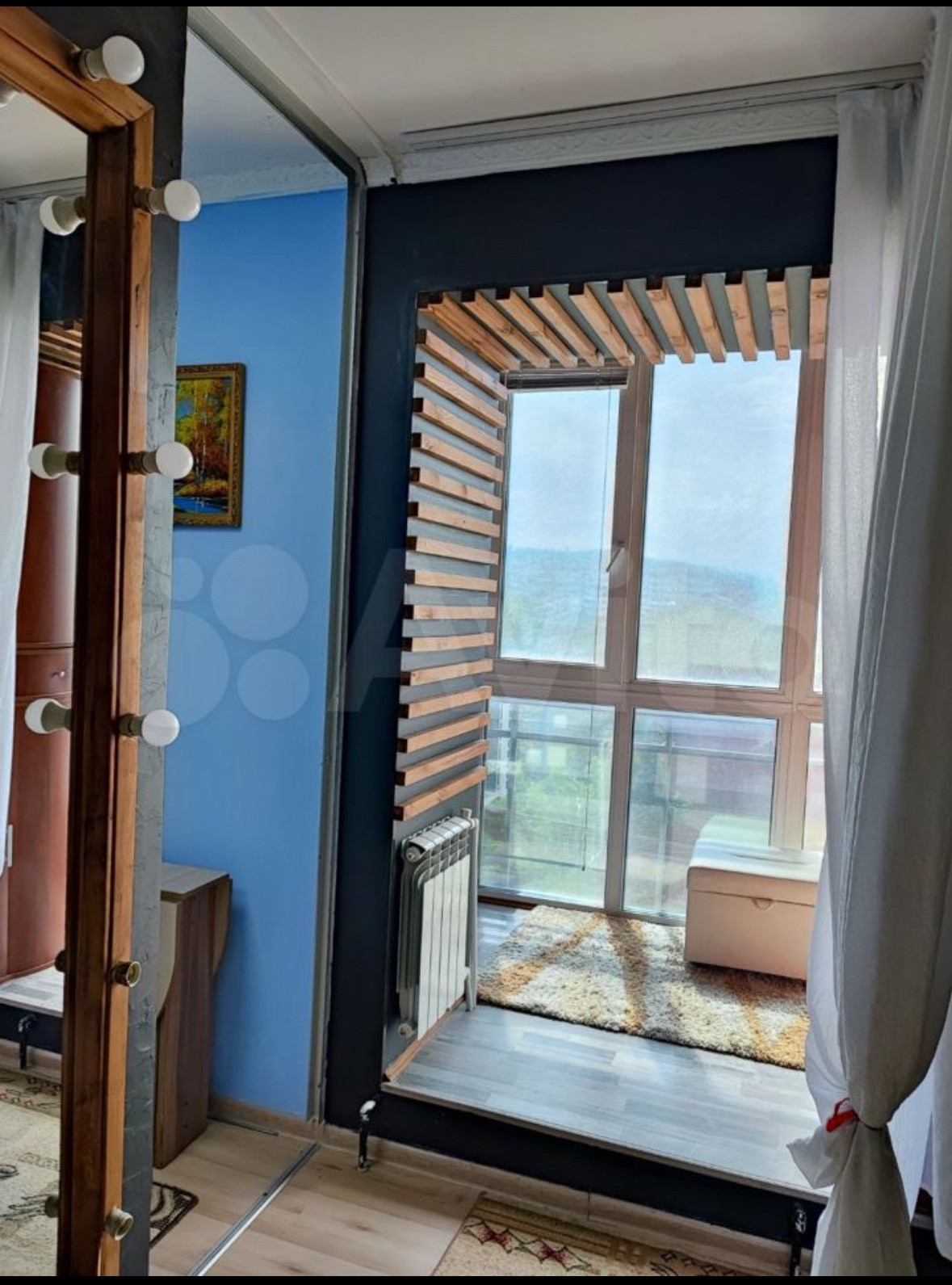 Интерьер квартиры выполнен в светлых тонах, что создаёт ощущение простора и свободы. Окна выходят на солнечную сторону, благодаря чему в помещении всегда много света.