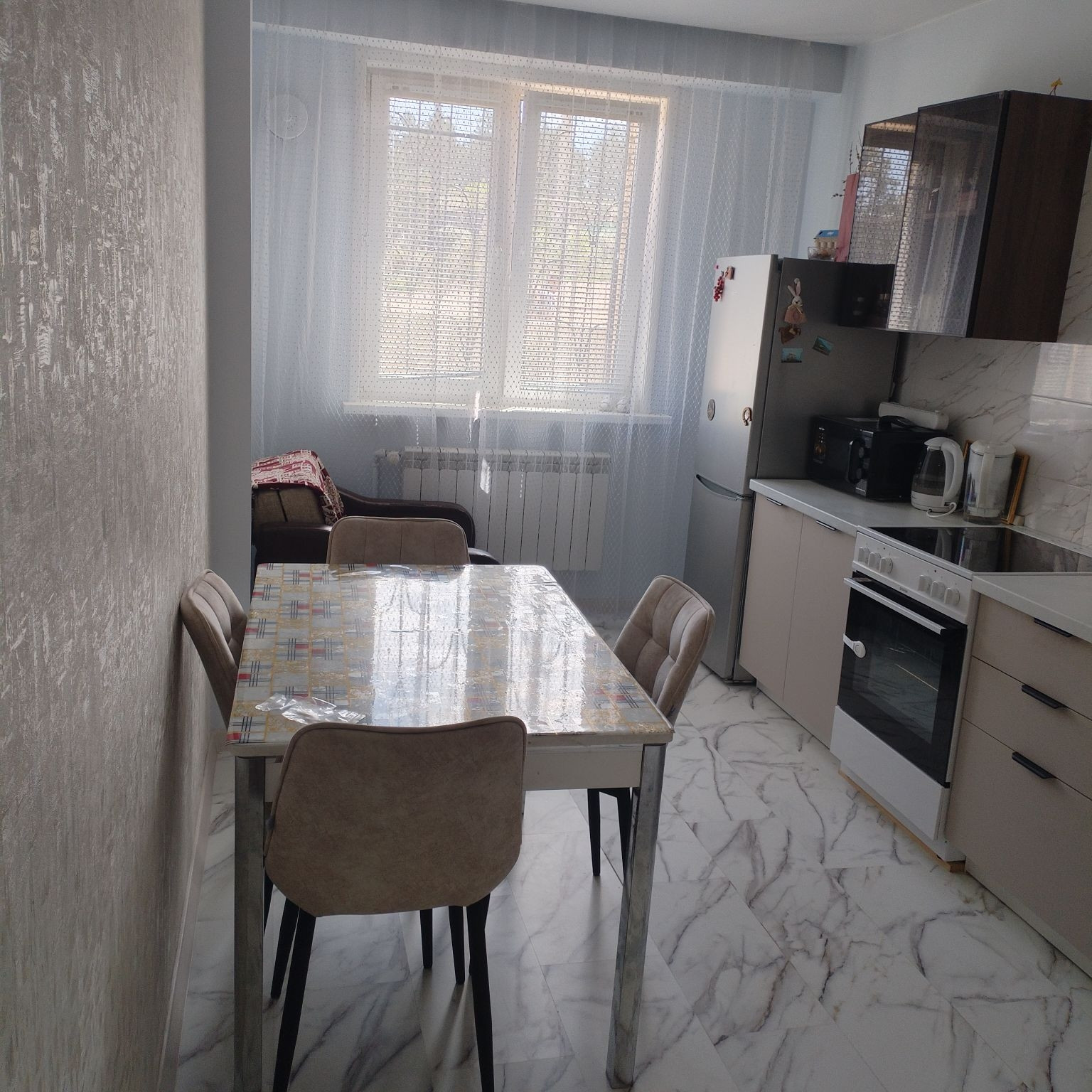 Квартира отличается продуманной планировкой: жилая площадь составляет 13 квадратных метров, а кухня — 12.4 квадратных метров, что создаёт комфортное пространство для приготовления пищи и отдыха. Интерьер квартиры выполнен в стиле евроремонта, благодаря чему она выглядит свежо и современно. Наличие совмещённого санузла позволяет эффективно использовать доступное пространство.