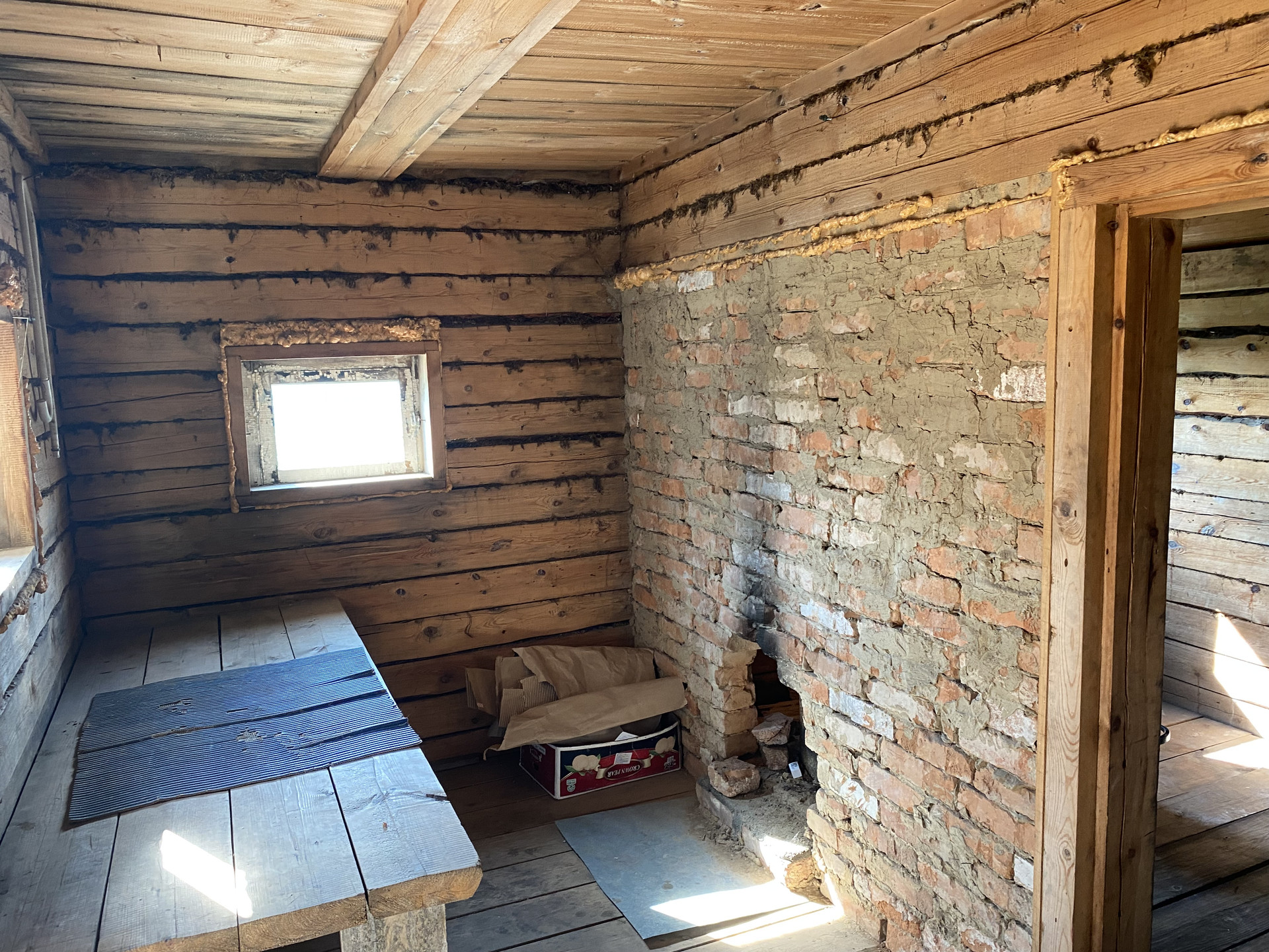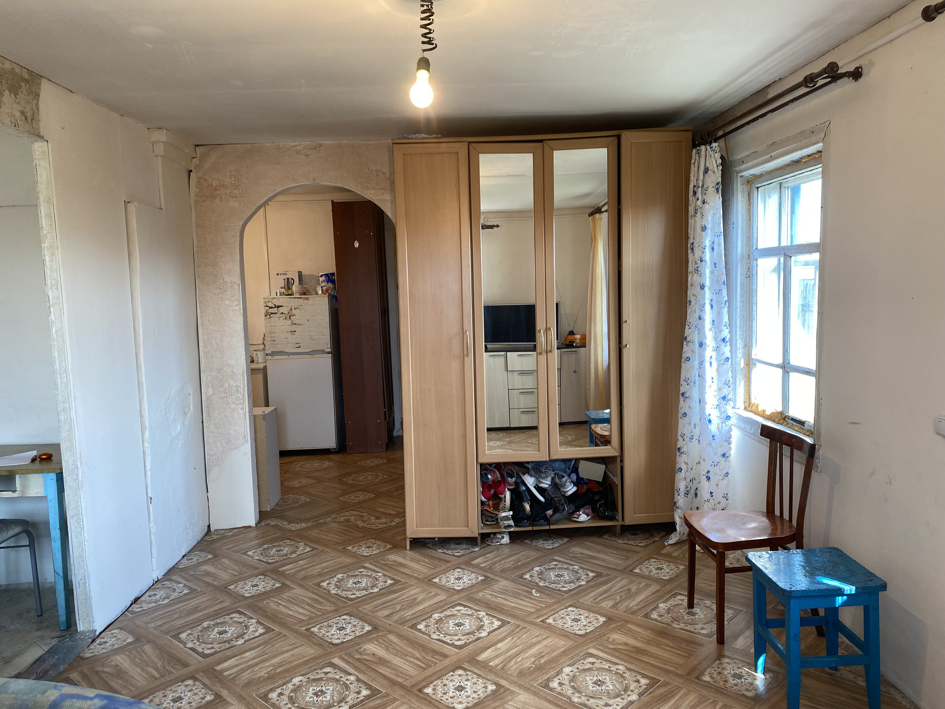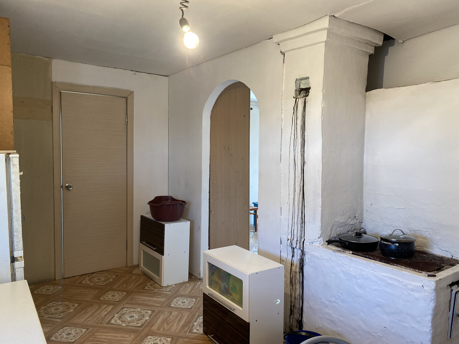 Дом бревенчатый, теплый с печным отоплением . С косметическим ремонтом, на полу линолеум , стены и потолок обшиты гипсокартоном, окрашены, оконные рамы деревянные. Вода из скважины заведена в дом. Водонагреватель, унитаз , раковина подключены, в рабочем состоянии.