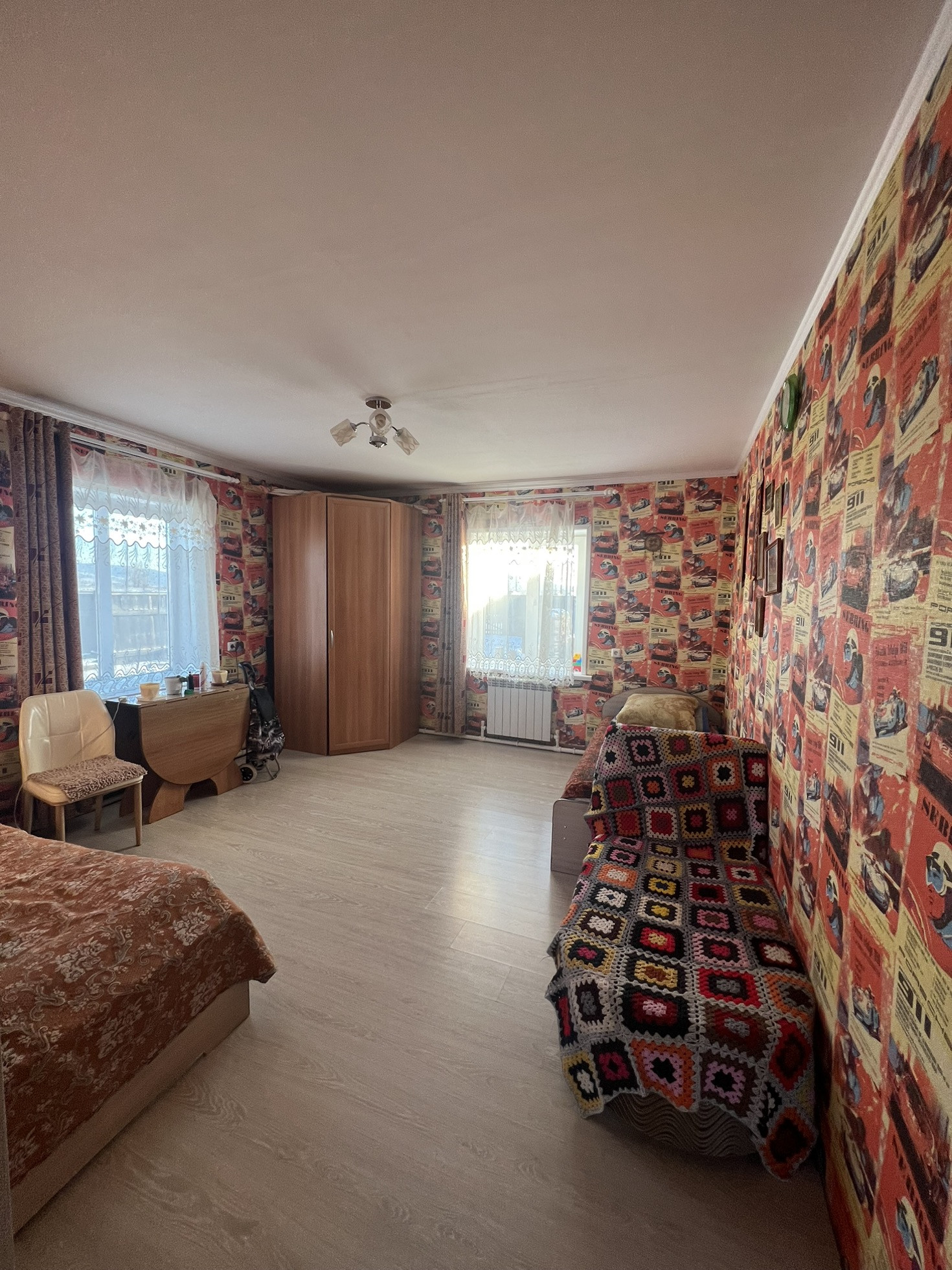 Дом с ремонтом, новые качественные обои, на полу линолеум, ламинат, так же есть электрокотел, печь с разводкой(ленинградка). Санузел совмещен, канализационная яма за воротами. Дом расположен на ровном участке 20 соток . Дом