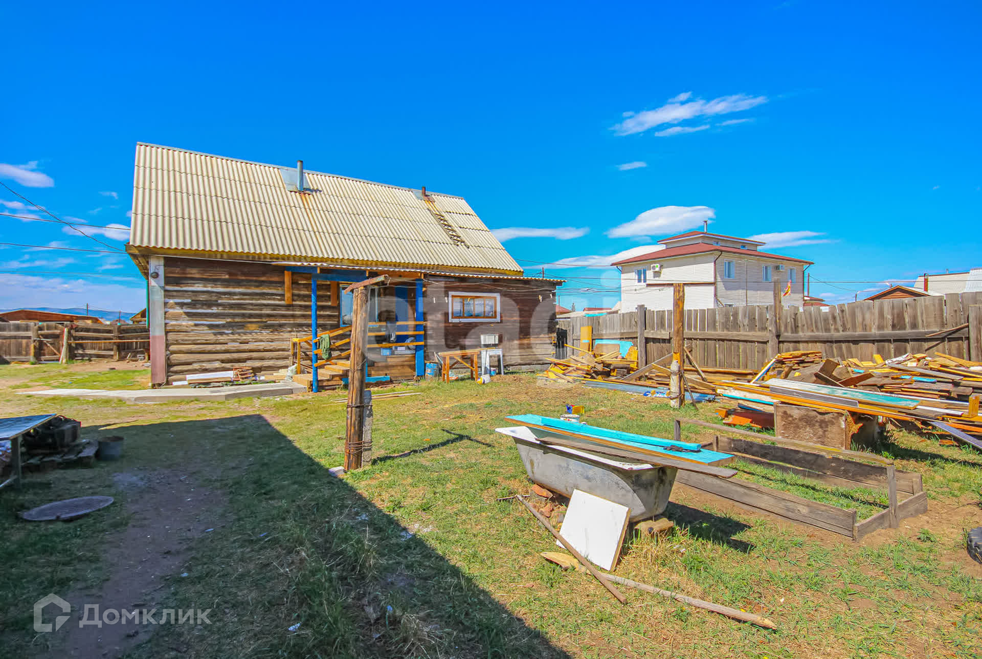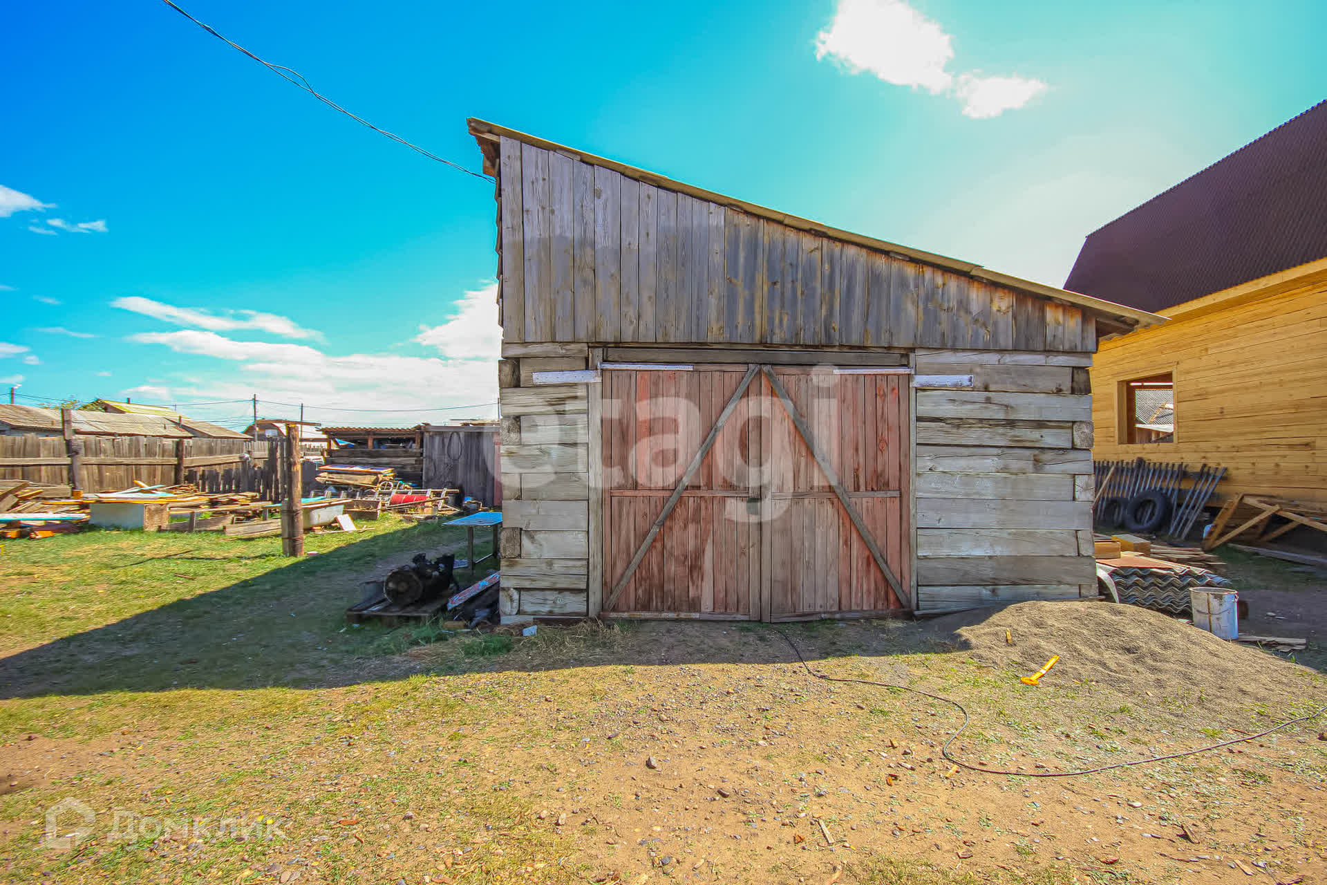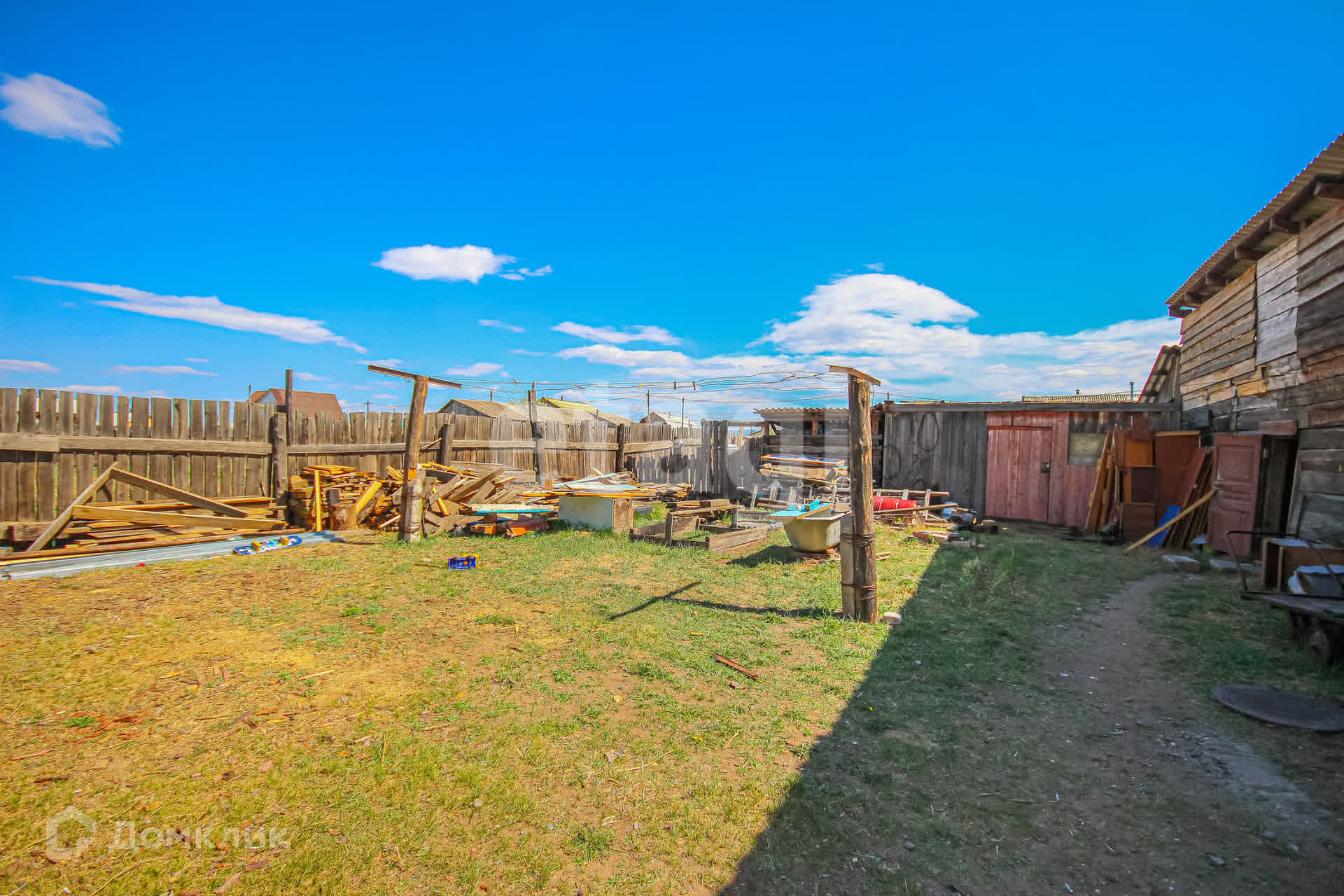Участок ровный, правильной формы, разработанный. Во дворе есть баня и большой гараж.