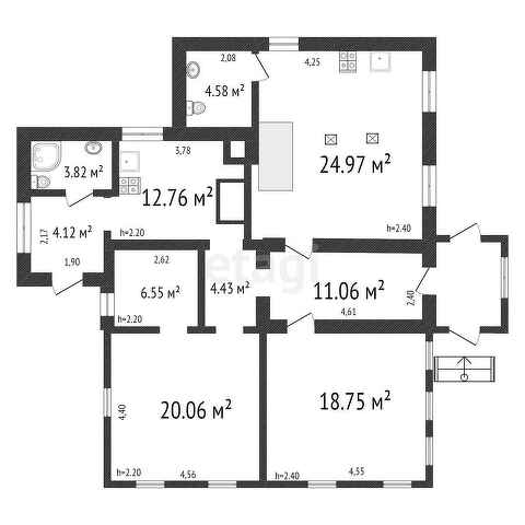 - Кухня-гостиная 24,97 кв.м;