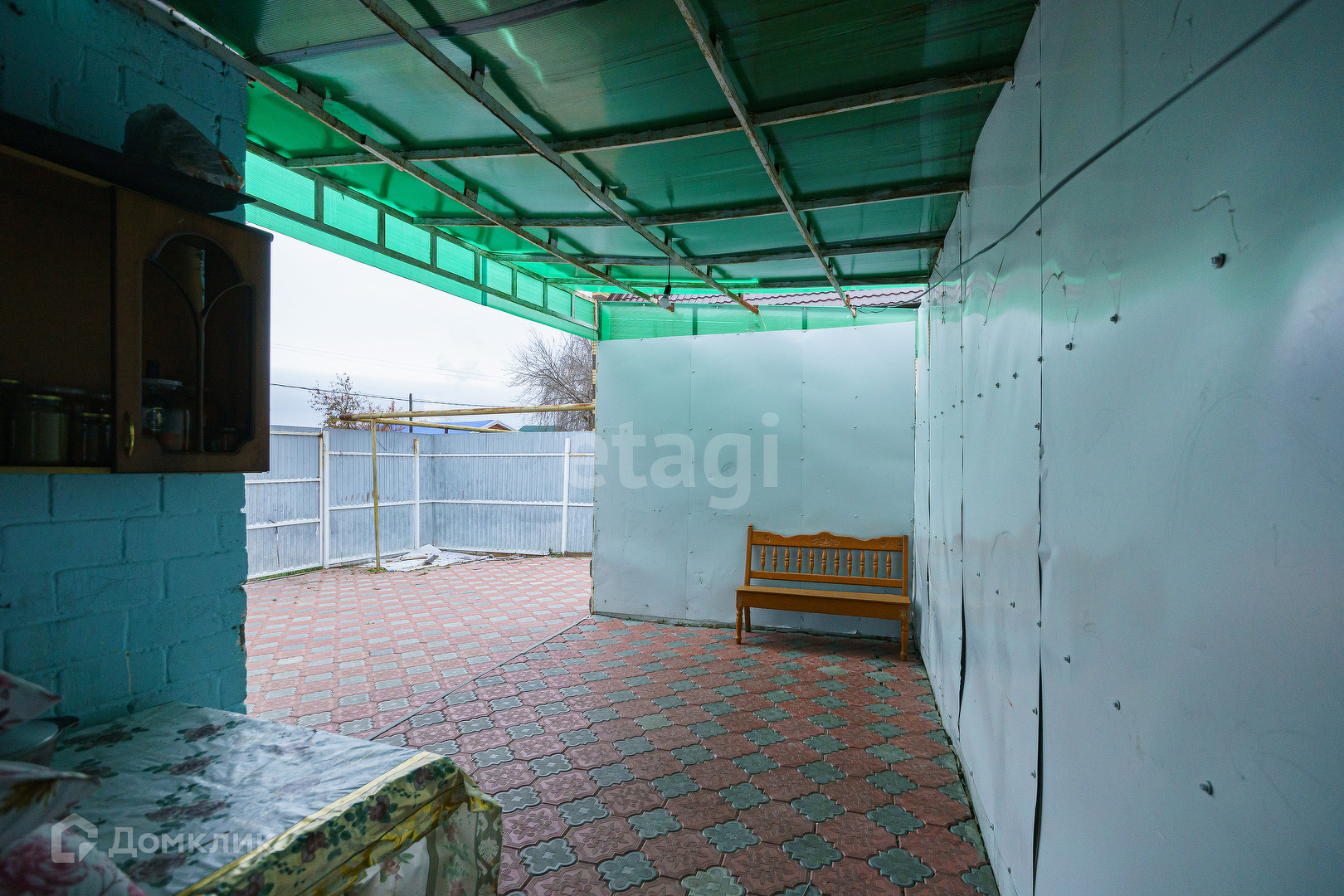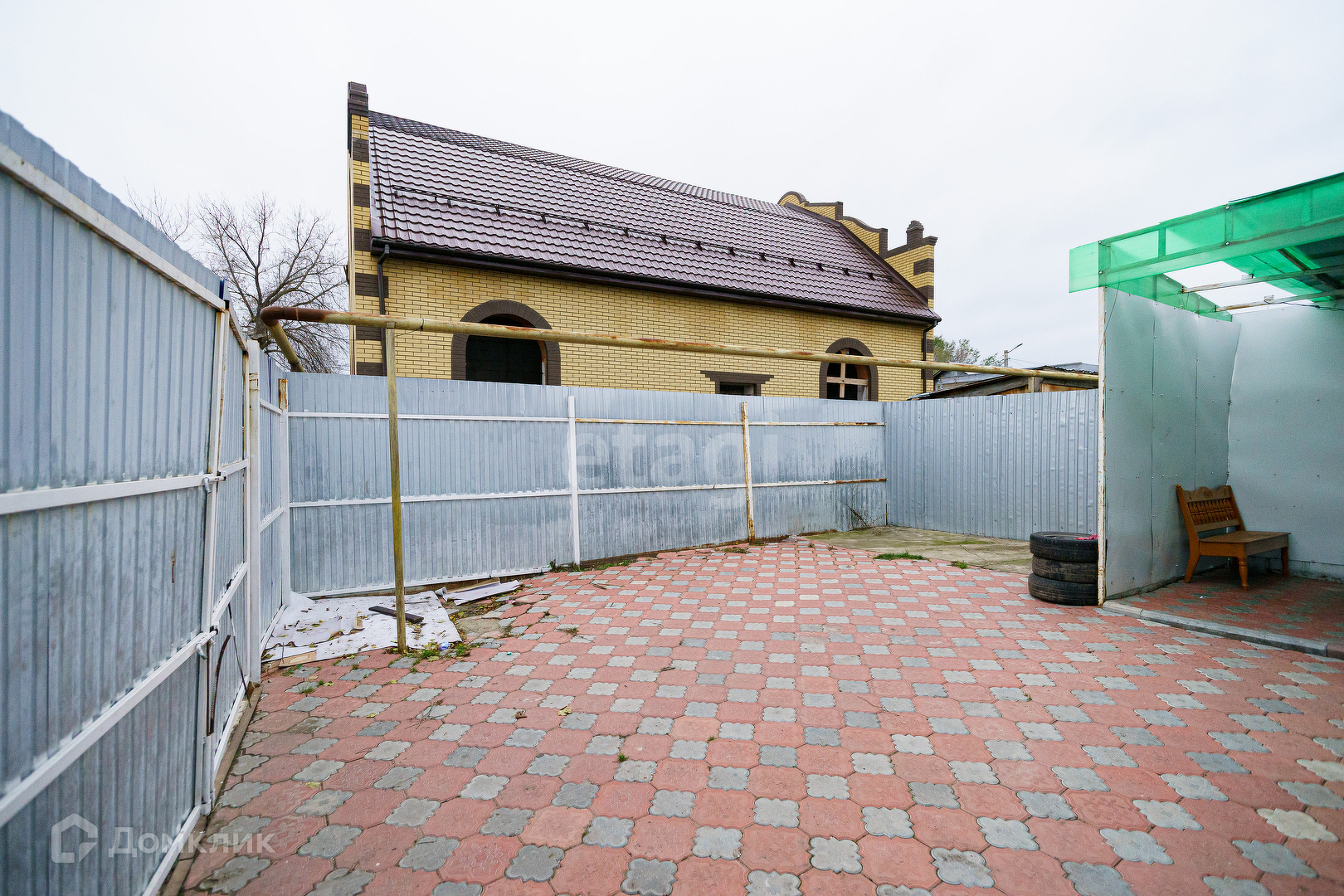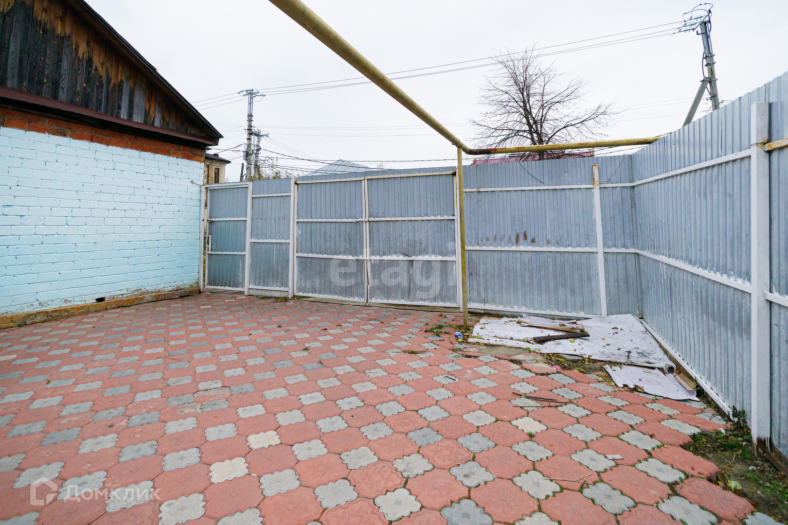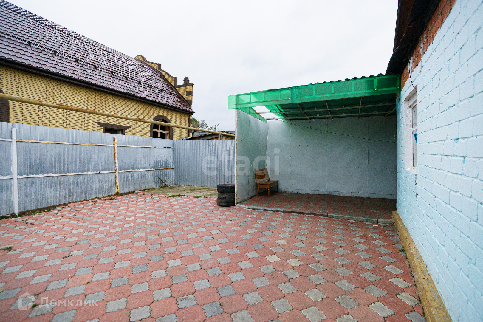 Территория дома огорождена забором (профлист). Для удобства имеется два выхода на улицу. Просторный двор выложен тратуарной плиткой, часть двора под навесом. Можно оборудовать летнюю кухню или место для отдыха. Часть участка отведена под огород. Земля обработана. Также есть сарай, в котором оборудованы места для хранения.
