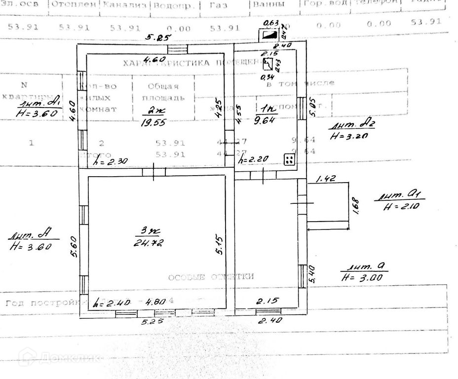 Общая площадь 53.9 м2