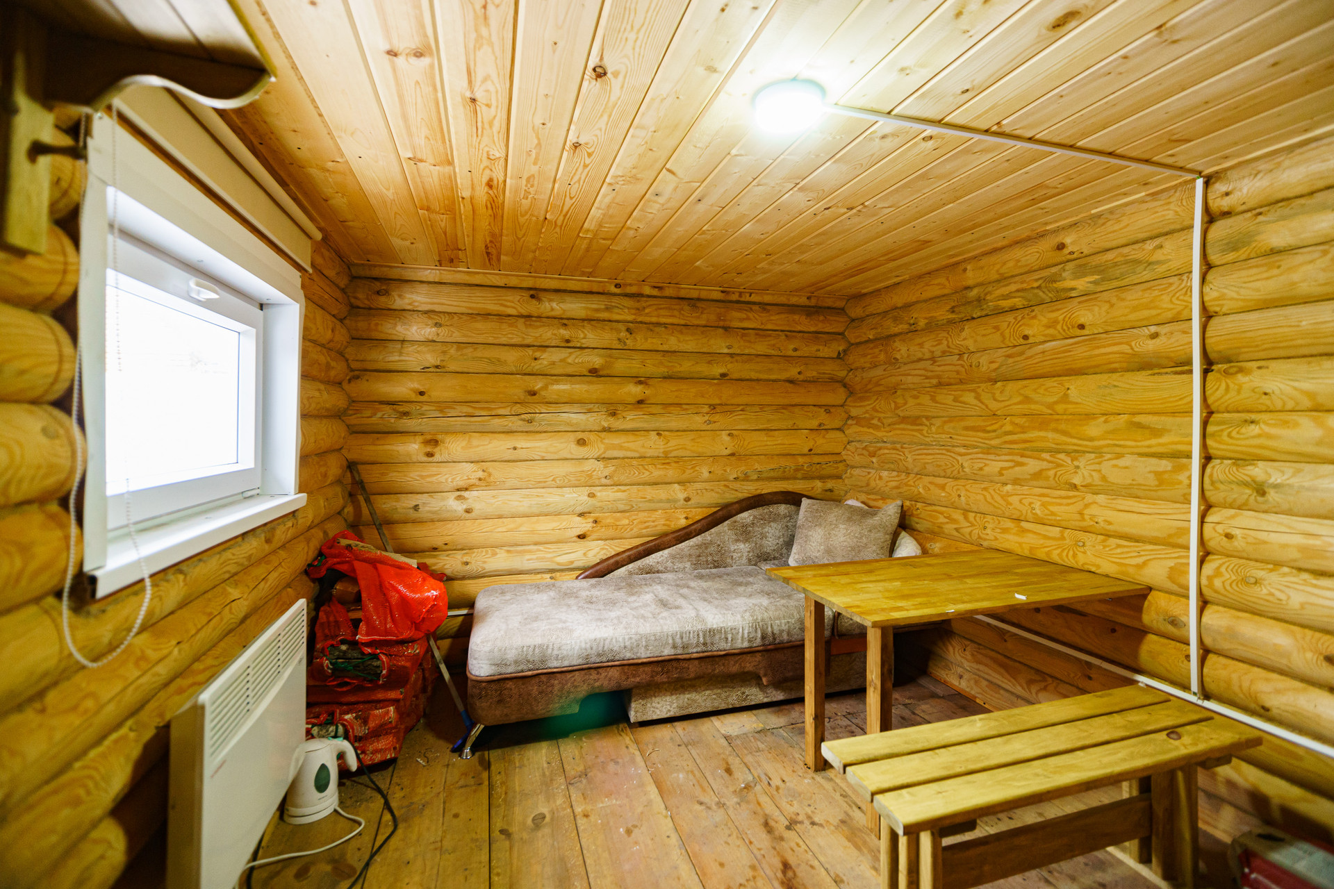 Баня сруб 6х3 тоже из оцилиндрованного бревна, в бане останется комод и диван, чердачный отдел в бане через люк имеется.