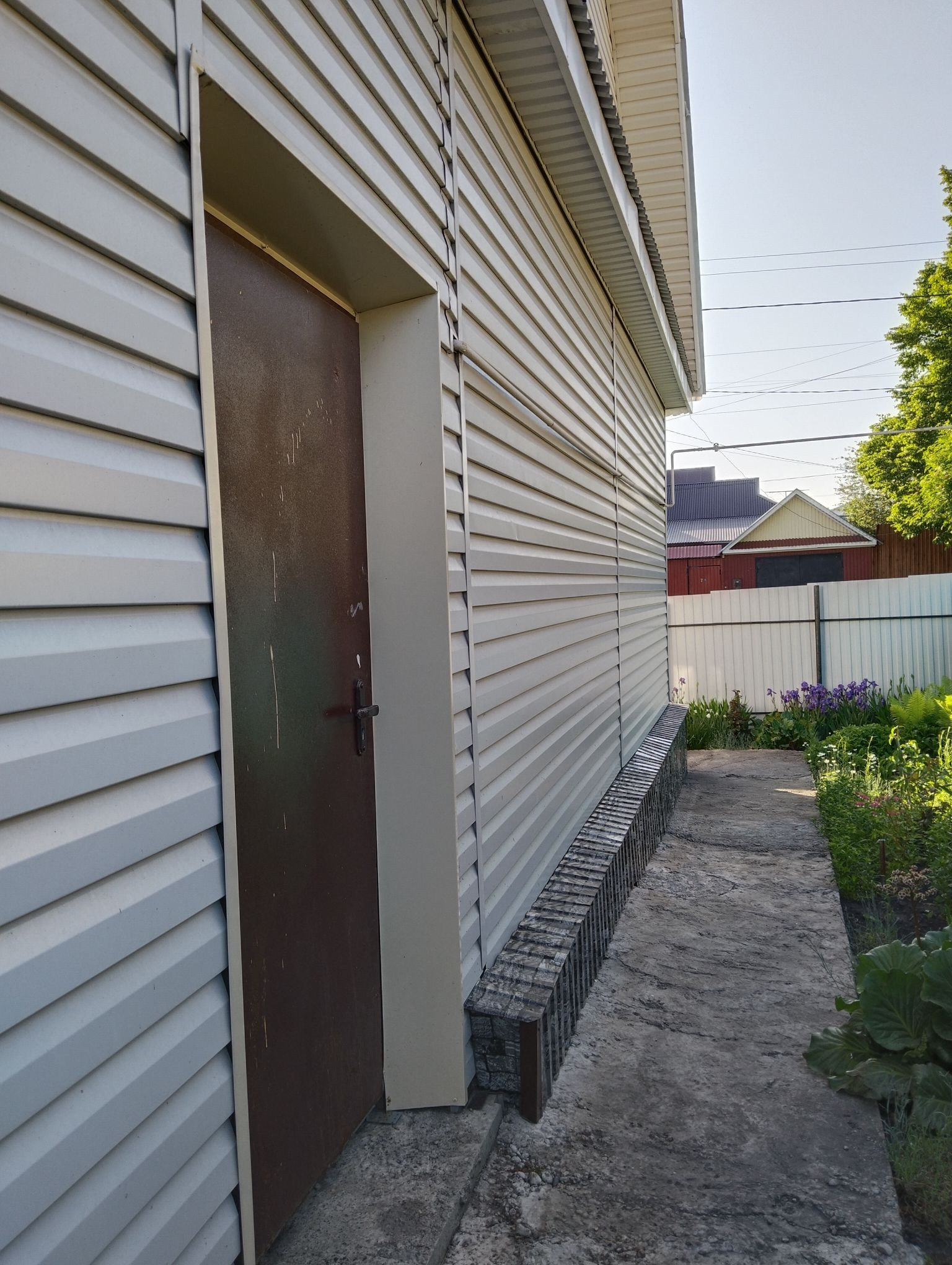 Часть дома из дерева, обшитая сайдингом, новый пристрой из блоков. 2-й этаж мансардный с дополнительным, отдельным входом, если вы захотите разделить части дома. Крыша из профнастила. В доме есть сухой погреб