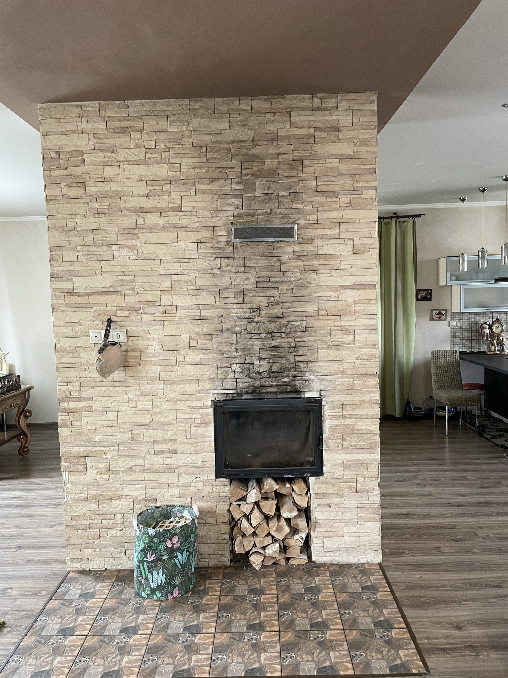 На первом этаже дома расположены хол, гостиная, кухня, прихожая, сан. узел, камин; на втором этаже-хол, три спальные, сан. узел; мансардный этаж: обшит деревянным блок-хаусом, ковровое напольное покрытие, мансардное окно, отопление; цокольный этаж: без отделки.