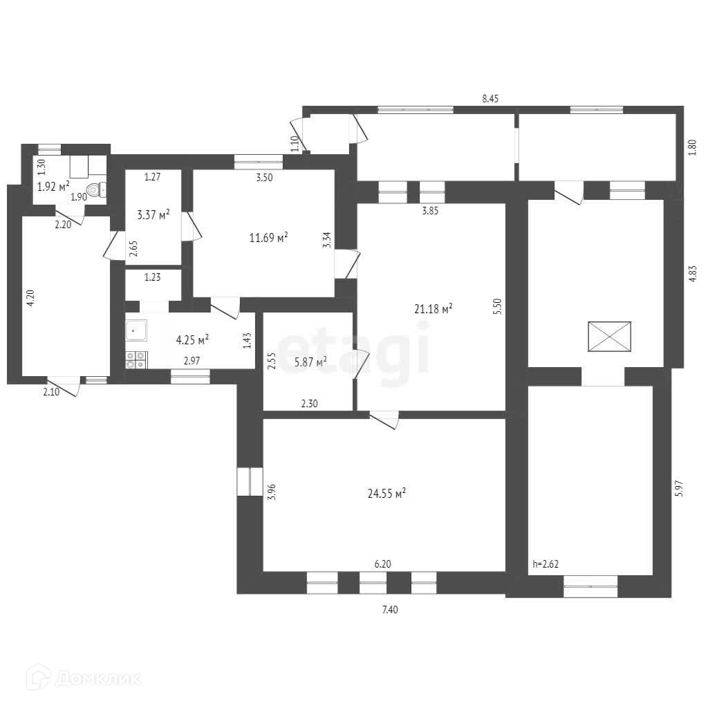 Общая площадь 73.7 м2